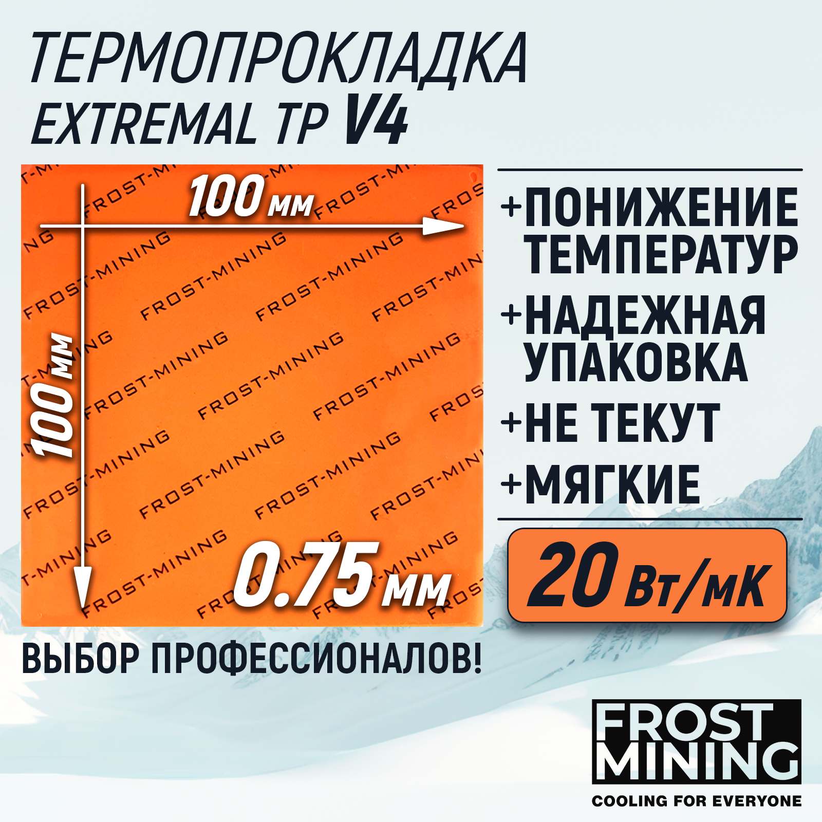 Купить Термопрокладка 0.75 мм 20 Вт/мК 100*100 мм для видеокарты, ноутбука, консоли, компьютера, ссд, асика FrostMining Maximum Thermal Pads с доставкой по всей России.