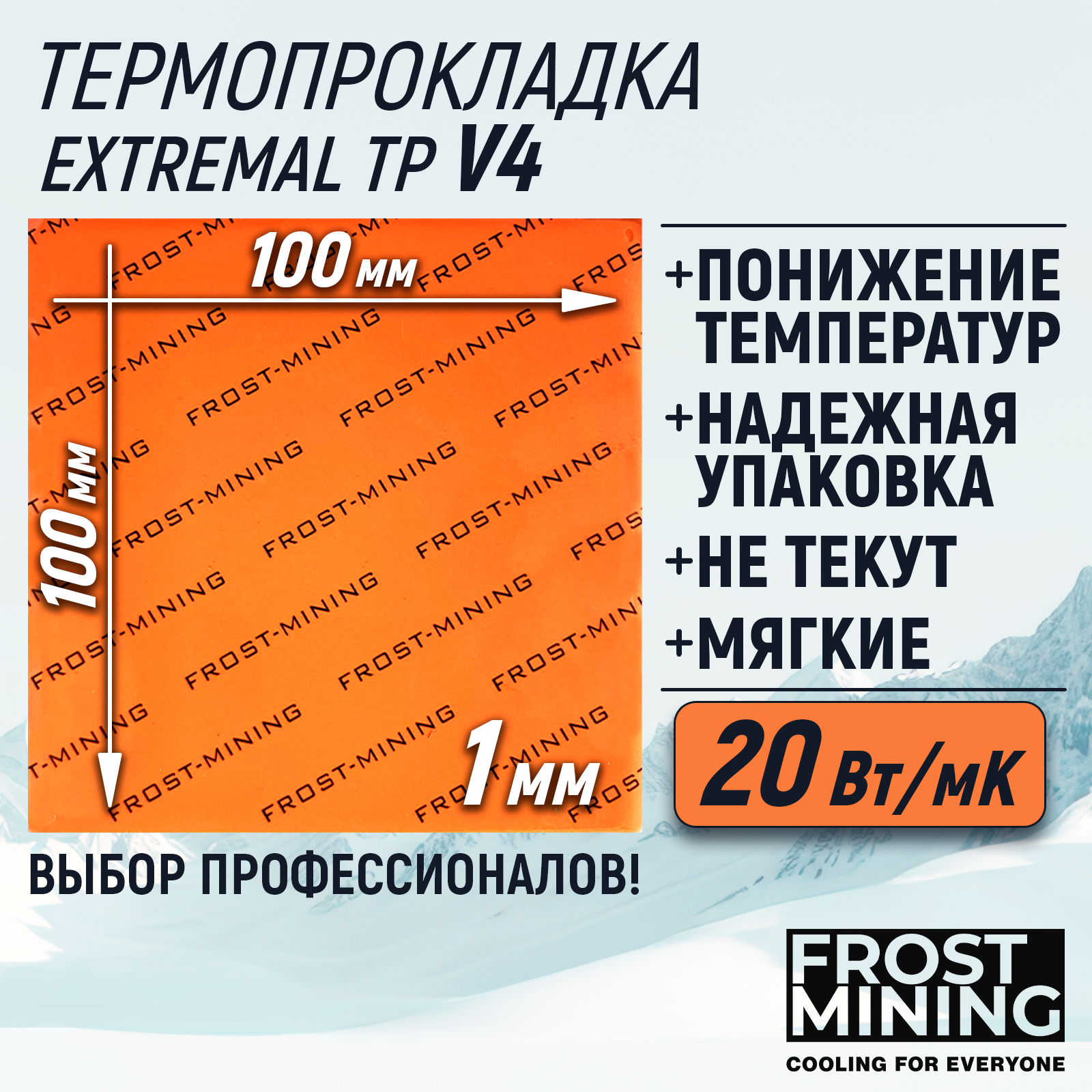 Термопрокладка 1 мм 20 Вт/мК 100*100 мм для видеокарты, ноутбука, консоли, компьютера, ссд, асика FrostMining Maximum Thermal Pads: сравнение цен, характеристики, фото, актуальное наличие и цены.
