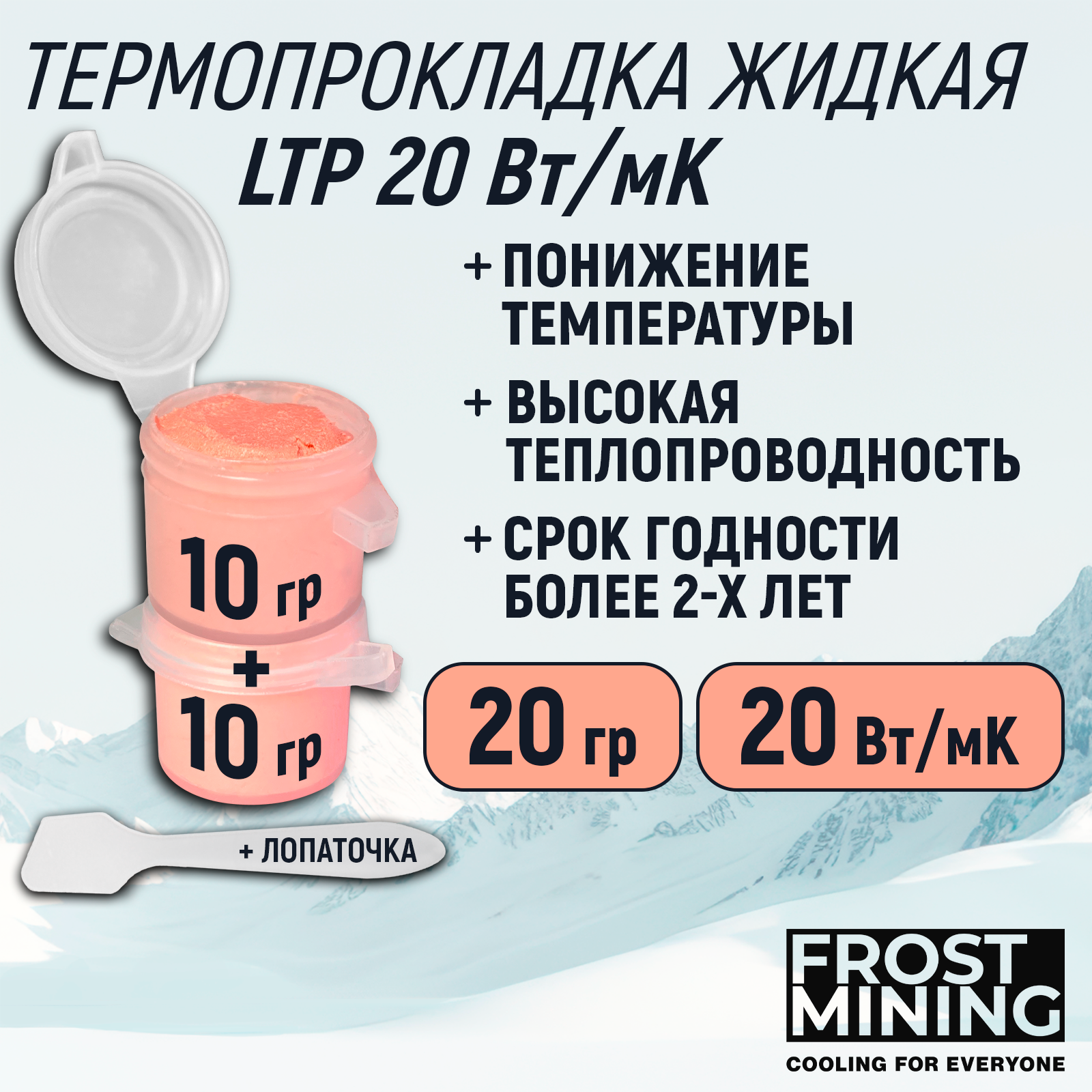 Жидкая термопрокладка для ноутбука, видеокарты, консоли, компьютера, асика, телефона и иной техники, где конструктивно возможно использование жидких термопрокладок. Примечание: нельзя применять жидкую термопрокладку вместо термопасты! Жидкая термопрокладка FrostMining Liquid Thermal Pads 20 Вт/мК –самый высокоэффективный вариант пластичных термоинтерфейсов (жидкие термопрокладки) на рынке РФ! Предназначены для отвода тепла от нагревающихся элементов средне и высокопроизводительного оборудования. Проверенный множеством тестов в играх, майнинге 24/7 термоинтерфейс содержит в своем составе качественные керамические наполнители и высококачественный силикон.