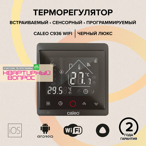 Купить Терморегулятор/термостат CALEO С936 Wi-Fi Black Lux встраиваемый, цифровой, программируемый, 3,5 кВт с доставкой по всей России. Терморегулятор/термостат CALEO С936 Wi-Fi Black Lux встраиваемый, цифровой, программируемый, 3,5 кВт: сравнение цен, характеристики, фото, актуальное наличие и цены.