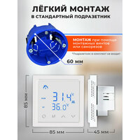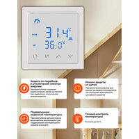 Терморегулятор выполнен в стильном белом цвете, который легко впишется в любой интерьер. Устройство изготовлено из качественных материалов, что гарантирует его долговечность и надежность в использовании.