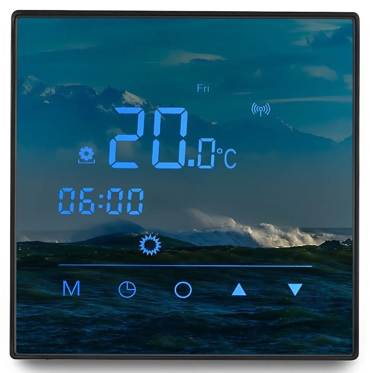 Купить Терморегулятор для теплого пола Vimarr (зеркальный) WIFI сенсорный программируемый с ЖК дисплеем и двумя датчиками/до 3,5 кВт (встраиваемый) 540TM1062-0055 с доставкой по всей России.