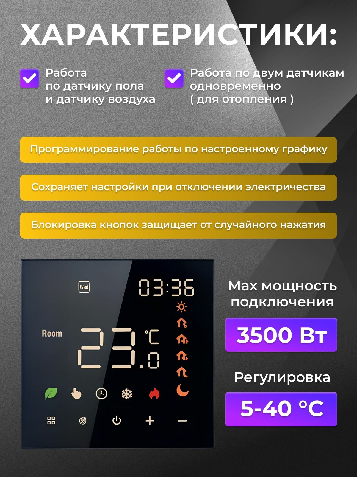 Купить Термостат / Терморегулятор для теплого пола, X1S Ver 3.0 Black, программируемый, чёрный с доставкой по всей России.