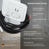 Терморегулятор Eberle FRe 52522 применяется для управления нагревом в системах электрических теплых полов. Монтируется в стандартный подрозетник. Выключатель сети. Индикация режима обогрева и экономичного режима. На терморегулятор FRe 525 22 можно устанавливать сменные накладки других производителей электроустановочных изделий. К терморегулятору Eberle FRe 525 22 подходят накладки GIRA System 55, Merten, Jung и др.