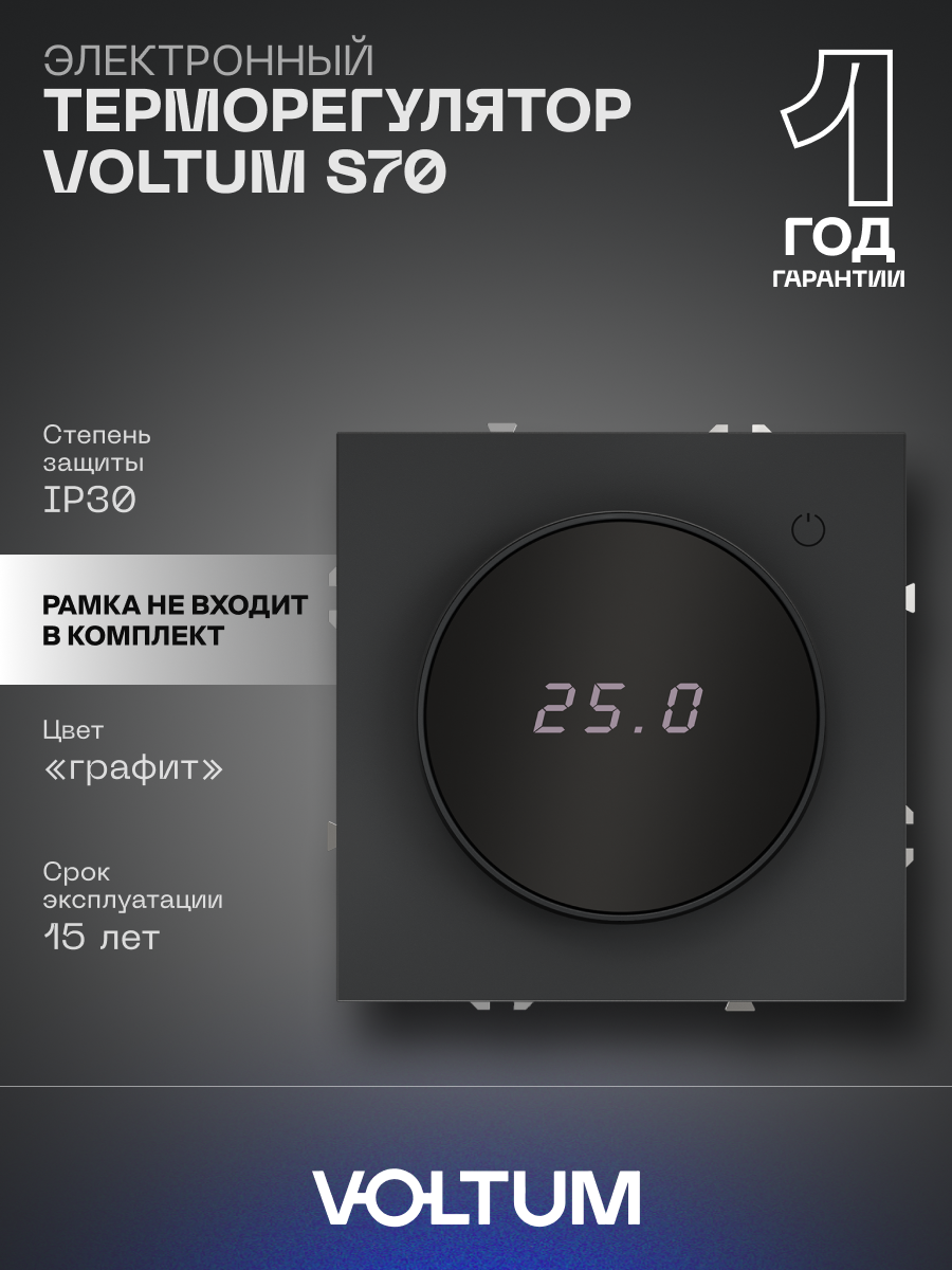 Терморегулятор электронный VOLTUM с индикацией и датчиком для теплого пола цвет графит VLS070107: сравнение цен, характеристики, фото, актуальное наличие и цены.