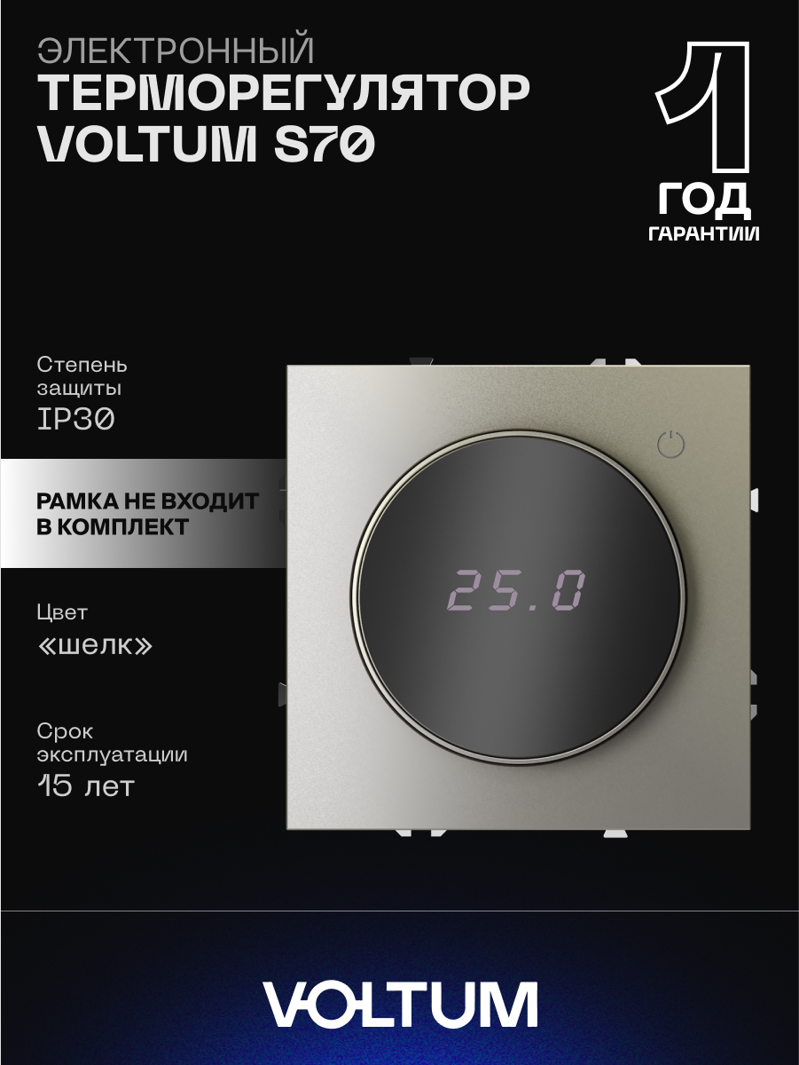 Терморегулятор электронный VOLTUM с индикацией и датчиком для теплого пола цвет шелк VLS070104: сравнение цен, характеристики, фото, актуальное наличие и цены.