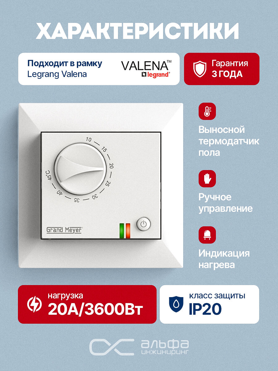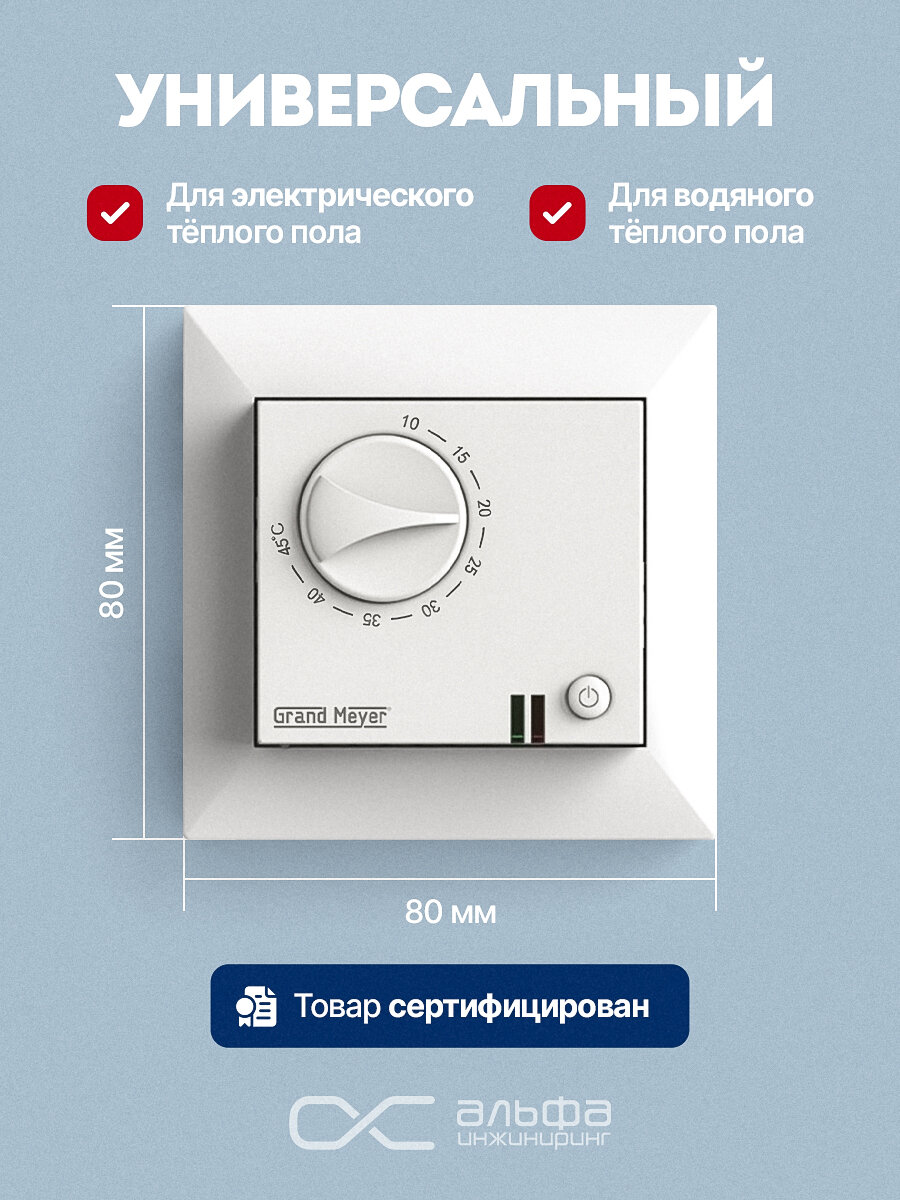 Терморегулятор для теплого пола Grand Meyer GM-109. Белый, механический терморегулятор.: сравнение цен, характеристики, фото, актуальное наличие и цены.