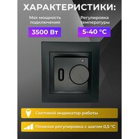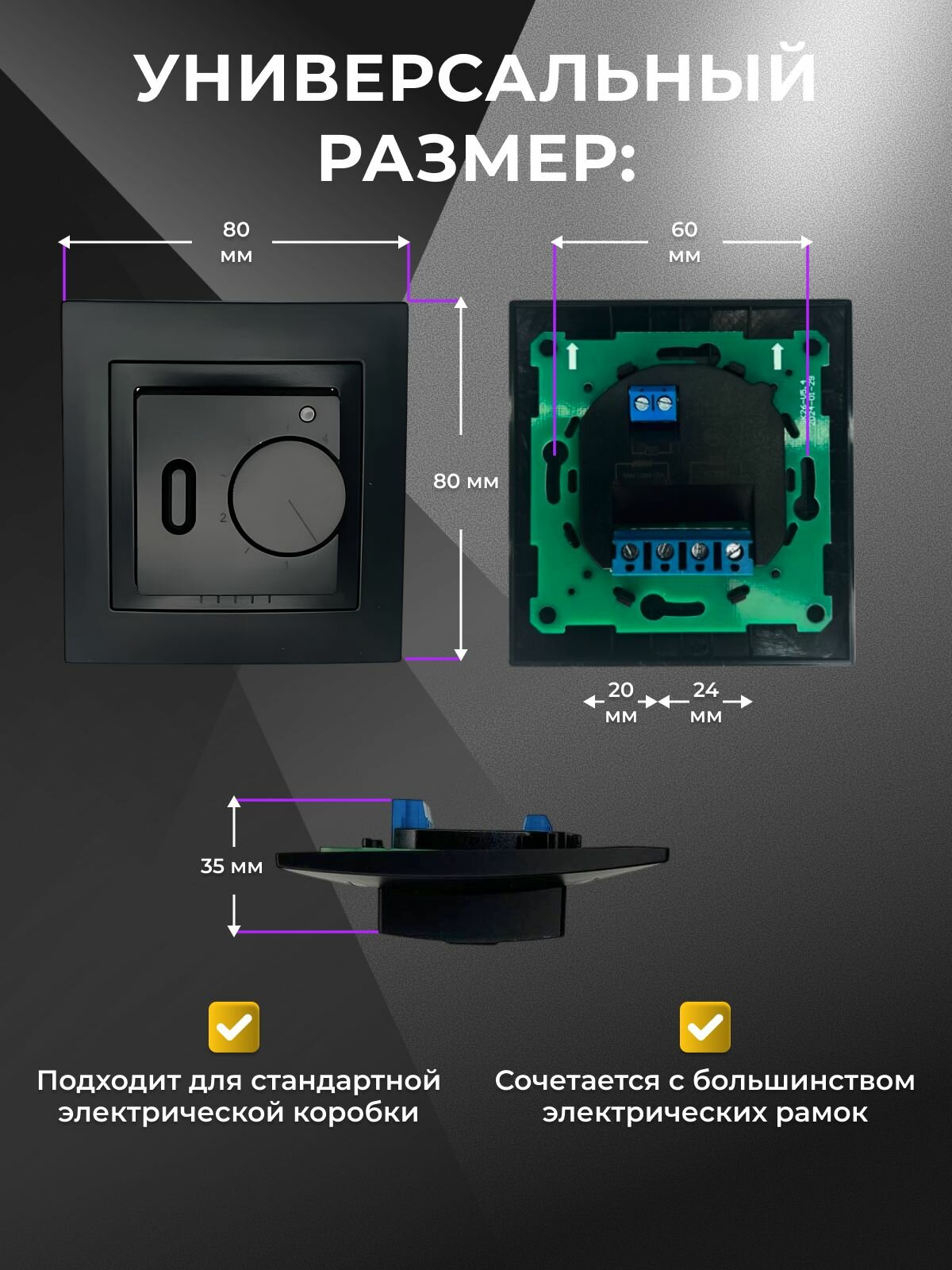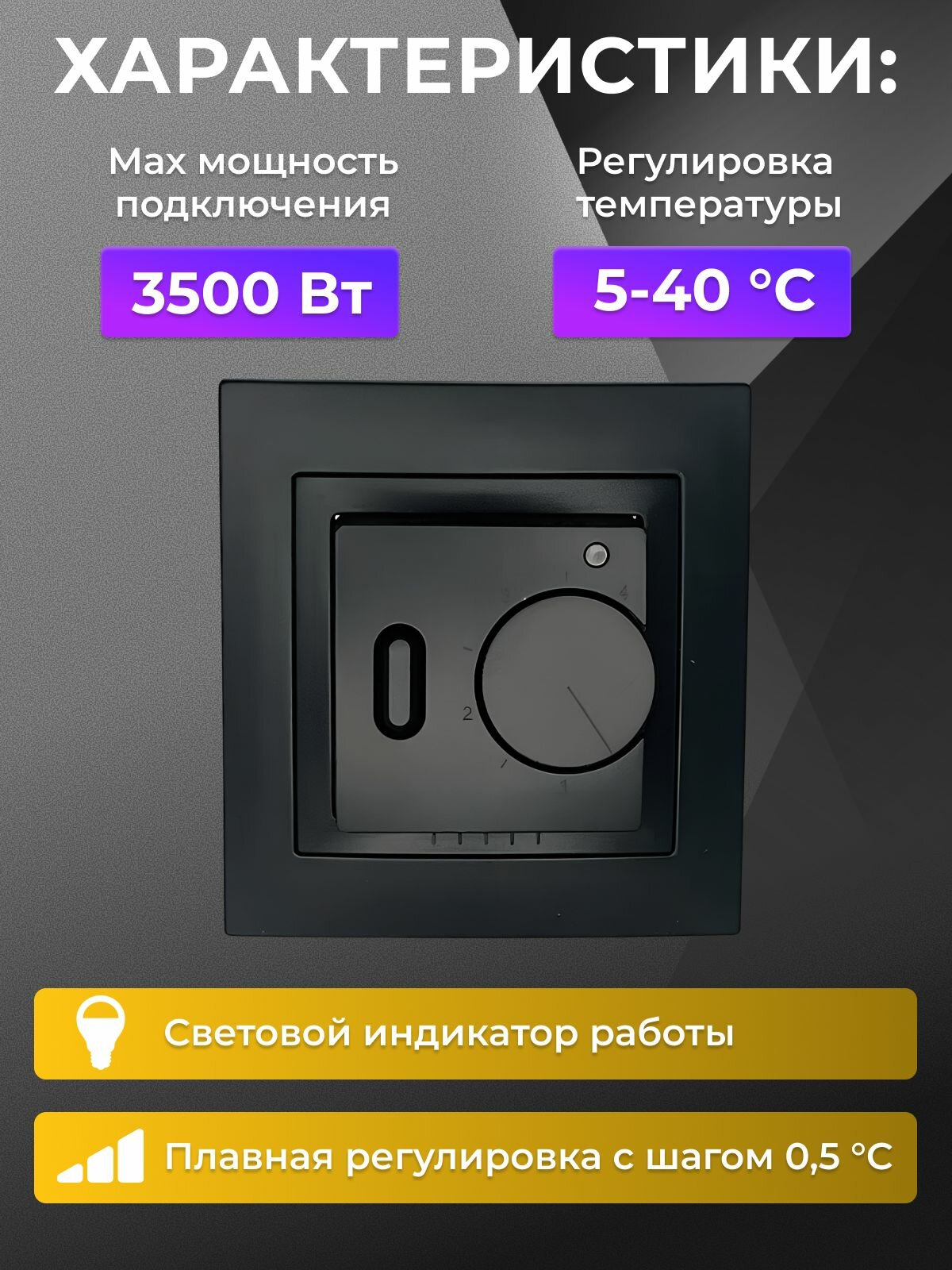 Терморегулятор, датчик температуры, 2 винта для крепления к подрозетнику , рамка переходная schneider unica, Atlas и legrand valena