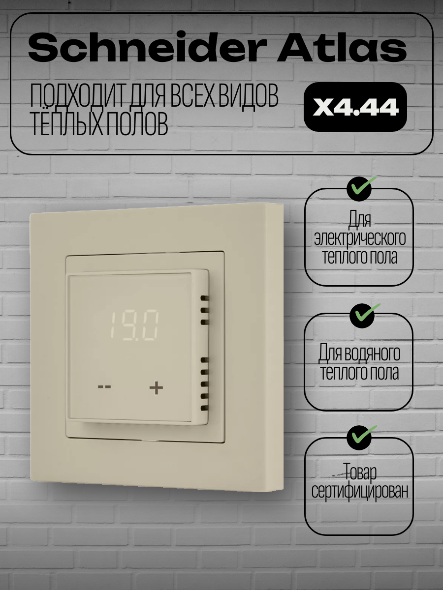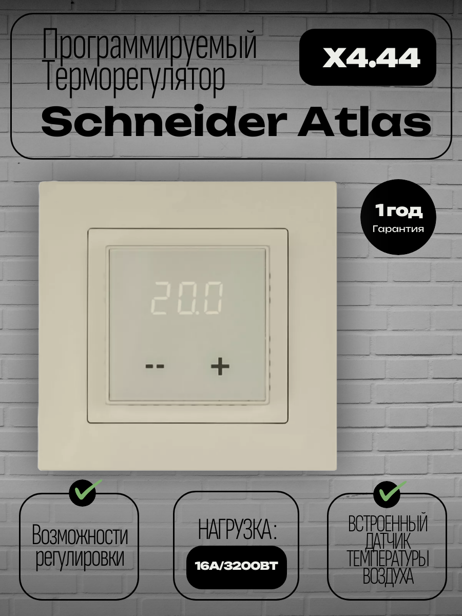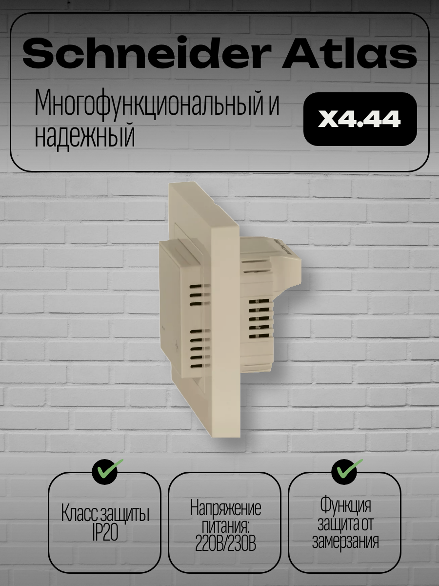 Купить Терморегулятор Schneider Atlas X4.44 с сенсорным управлением, бежевый с доставкой по всей России. Терморегулятор Schneider Atlas X4.44 с сенсорным управлением, бежевый: сравнение цен, характеристики, фото, актуальное наличие и цены.