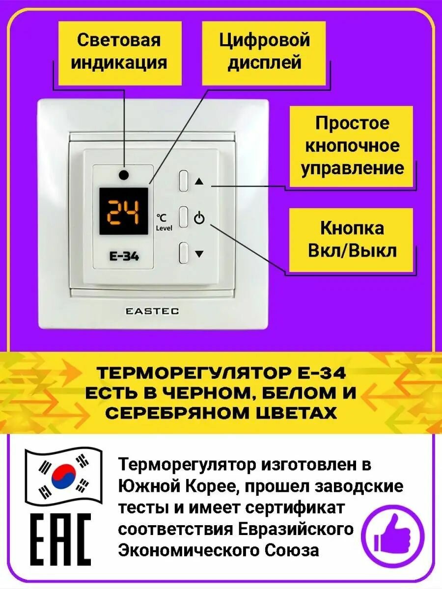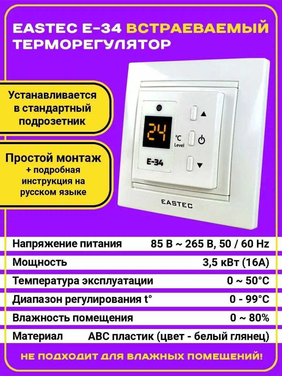 Купить Терморегулятор/термостат Eastec E-34 встраиваемый с выносным датчиком температуры с доставкой по всей России.