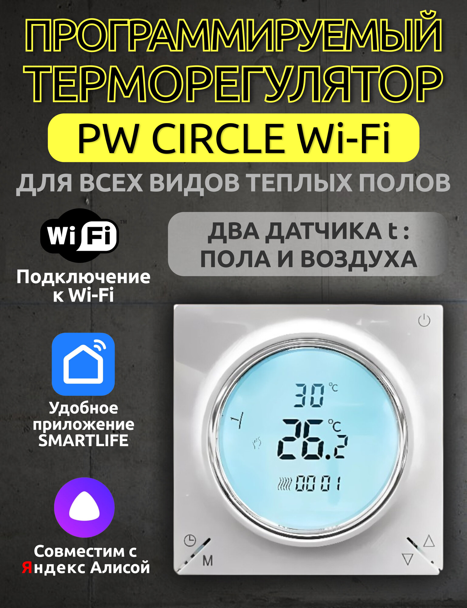 Терморегулятор/термостат PW CIRCLE WIFI до 3520Вт, белый, Для теплого пола, Для конвекторов: сравнение цен, характеристики, фото, актуальное наличие и цены.