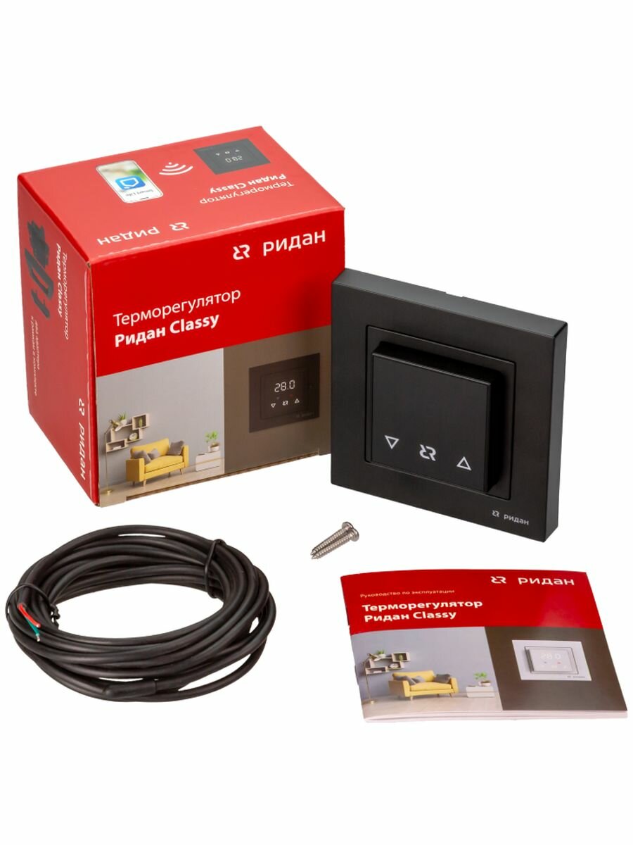 Терморегулятор/термостат ридан Classy c Wi-Fi, с датчиком пола, черный, 16А: сравнение цен, характеристики, фото, актуальное наличие и цены.