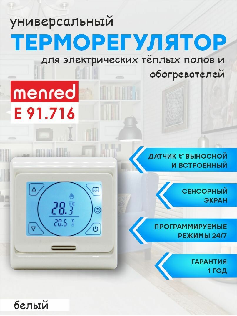 Купить Терморегулятор/термостат сенсорный Menred E91 (для теплого пола и инфракрасных обогревателей) с доставкой по всей России. Терморегулятор/термостат сенсорный Menred E91 (для теплого пола и инфракрасных обогревателей): сравнение цен, характеристики, фото, актуальное наличие и цены.