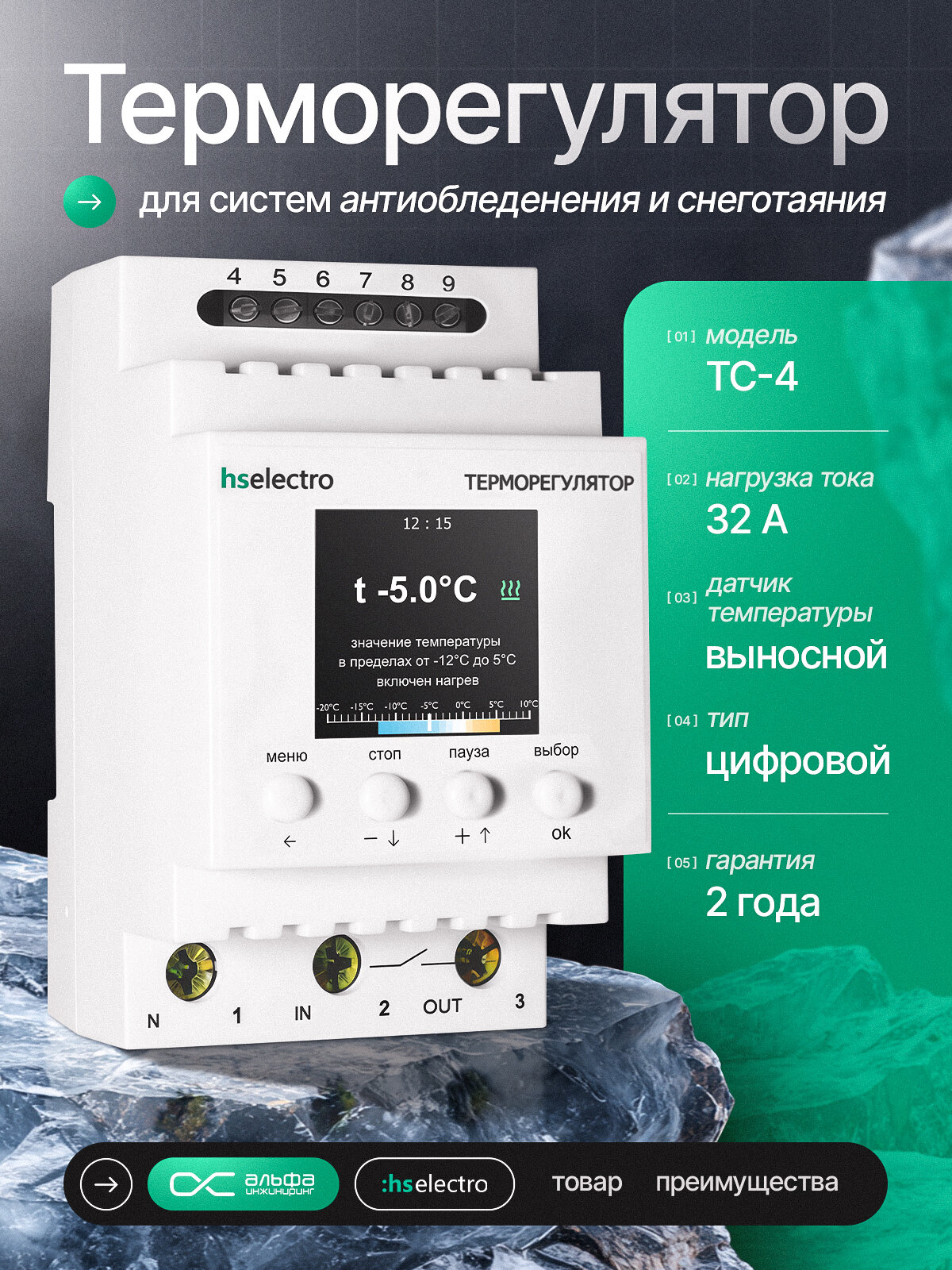 Терморегулятор ТС-4 для систем снеготаяния, датчик температуры в комплекте: сравнение цен, характеристики, фото, актуальное наличие и цены.