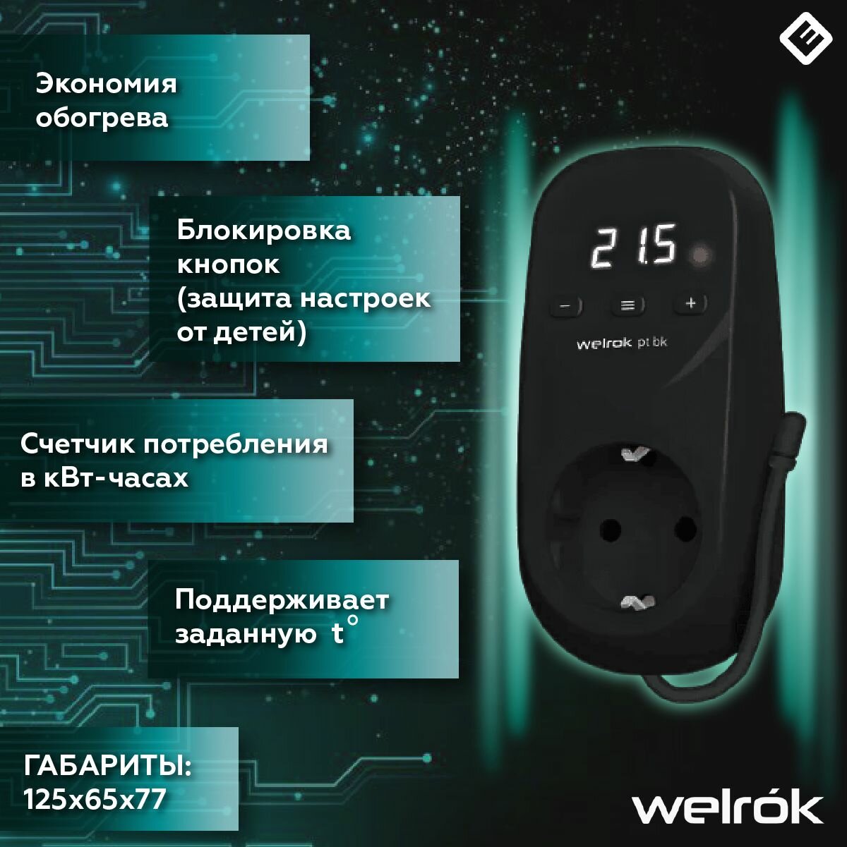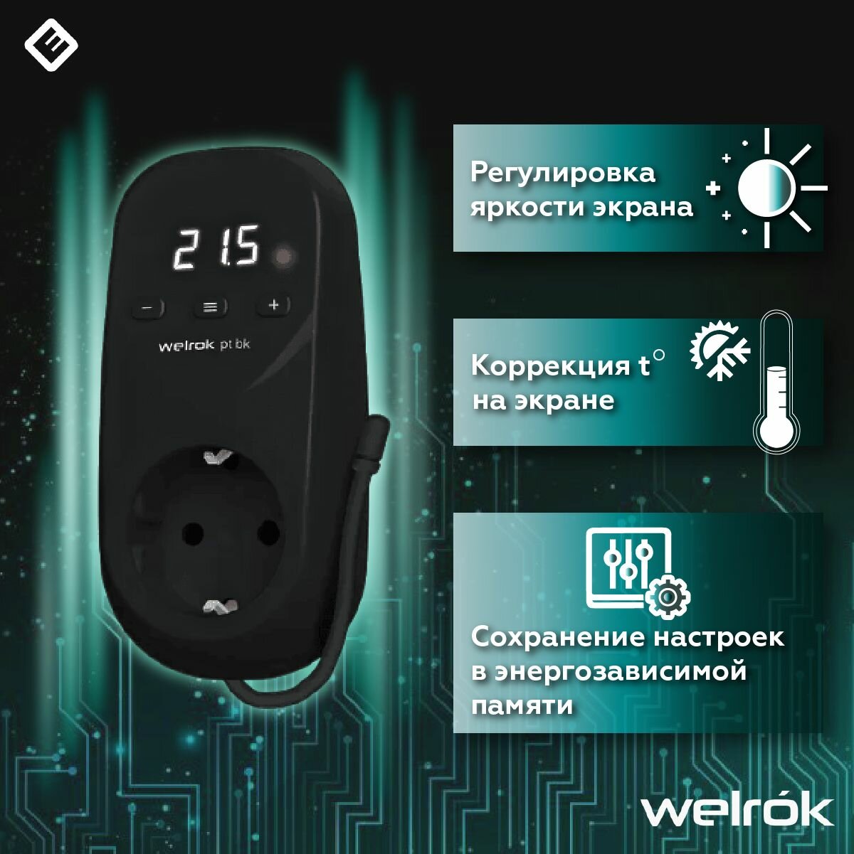 Терморегулятор цифровой с индикацией температуры в розетку 16 А, 3000 ВА Welrok pt bk: сравнение цен, характеристики, фото, актуальное наличие и цены.