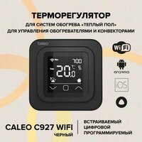 CALEO C927 WIFI — встраиваемый цифровой программируемый регулятор температуры с возможностью удаленного управления по Wi-Fi. Предназначен для управления электрическими и водяными системами обогрева: всеми видами теплых полов, различными электронагревателями и конвекторами, шаровыми кранами с электродвигателем, электромеханическими, электромагнитными и тепловыми клапанами.