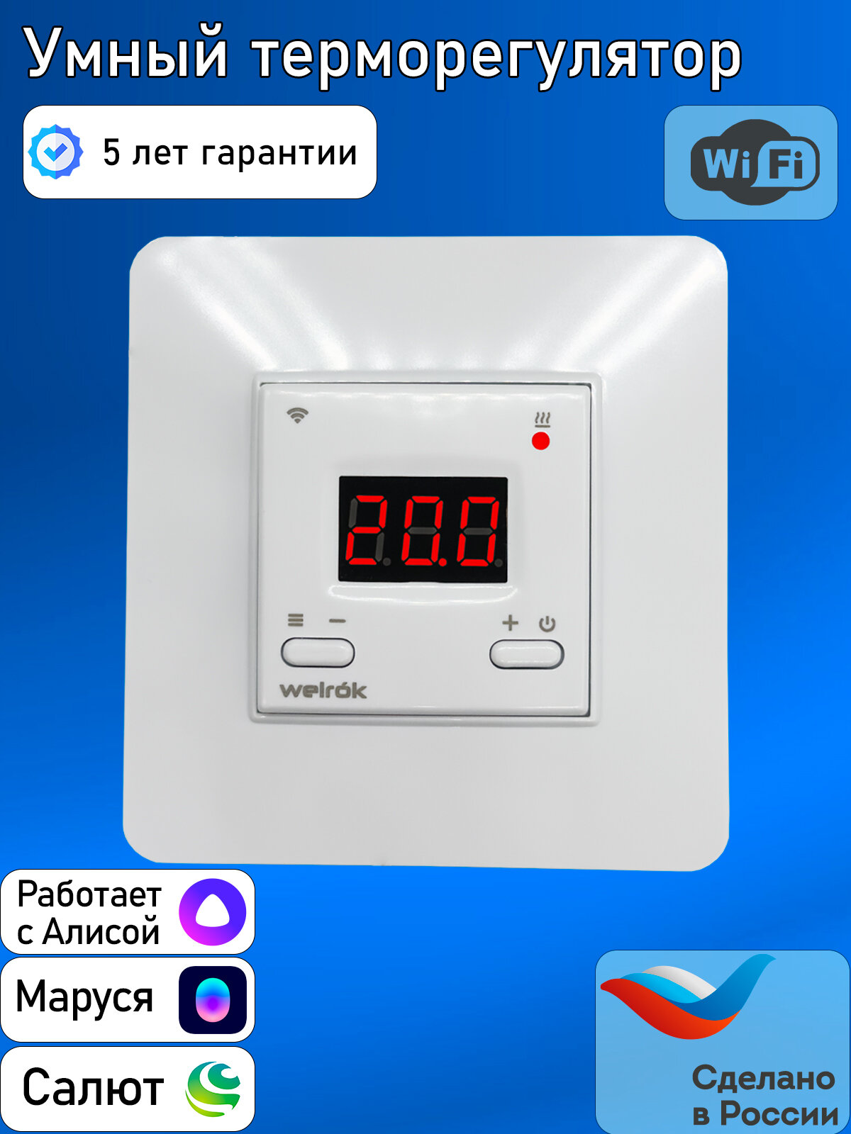 Купить Терморегулятор/термостат Welrok AZ умный для теплого пола с управлением через Wi-FI с доставкой по всей России.