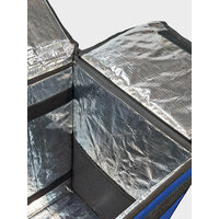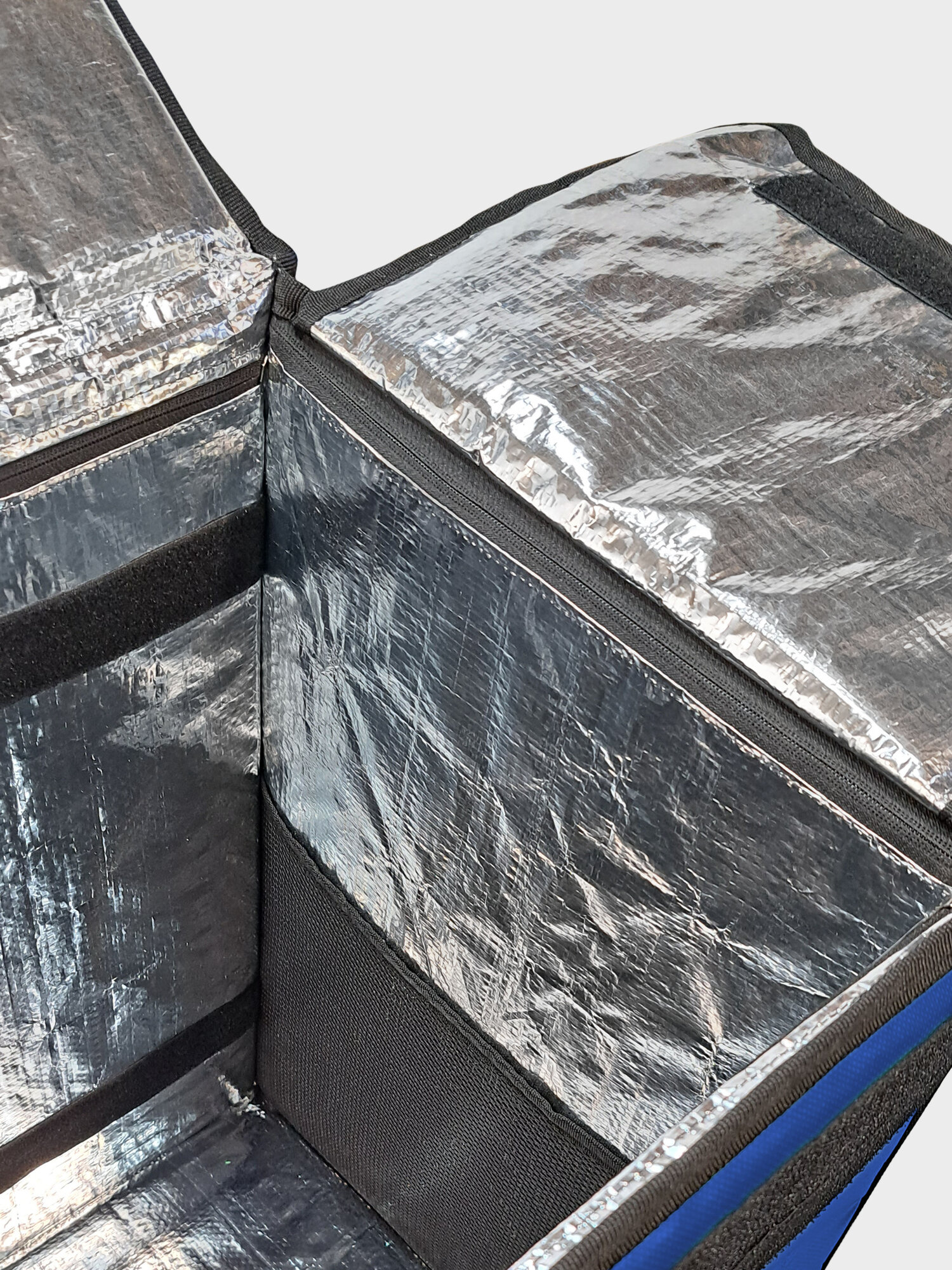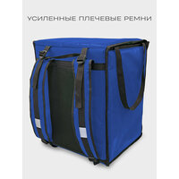 Термосумка-рюкзак подходит для велосипедного багажника. Выполнена из плотного материала ПВХ 100%: имеет 2 термослоя устойчивых К скоплению конденсата, микроорганизмам, плесени И грибкам. Они придают жесткость стенкам сумки, сохраняя продукты от давления И деформации. Внутренняя часть сумки из армированного фольгированного материала, который НЕ рвется при контакте с углами коробок, пластиковой посудой и т. д. Термосумка сохраняет температуру еды 2-3 часа при резкой разнице температур и до 10 часов при средней разнице температур. Эта термосумка курьера может перенести 1000 доставок.