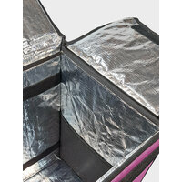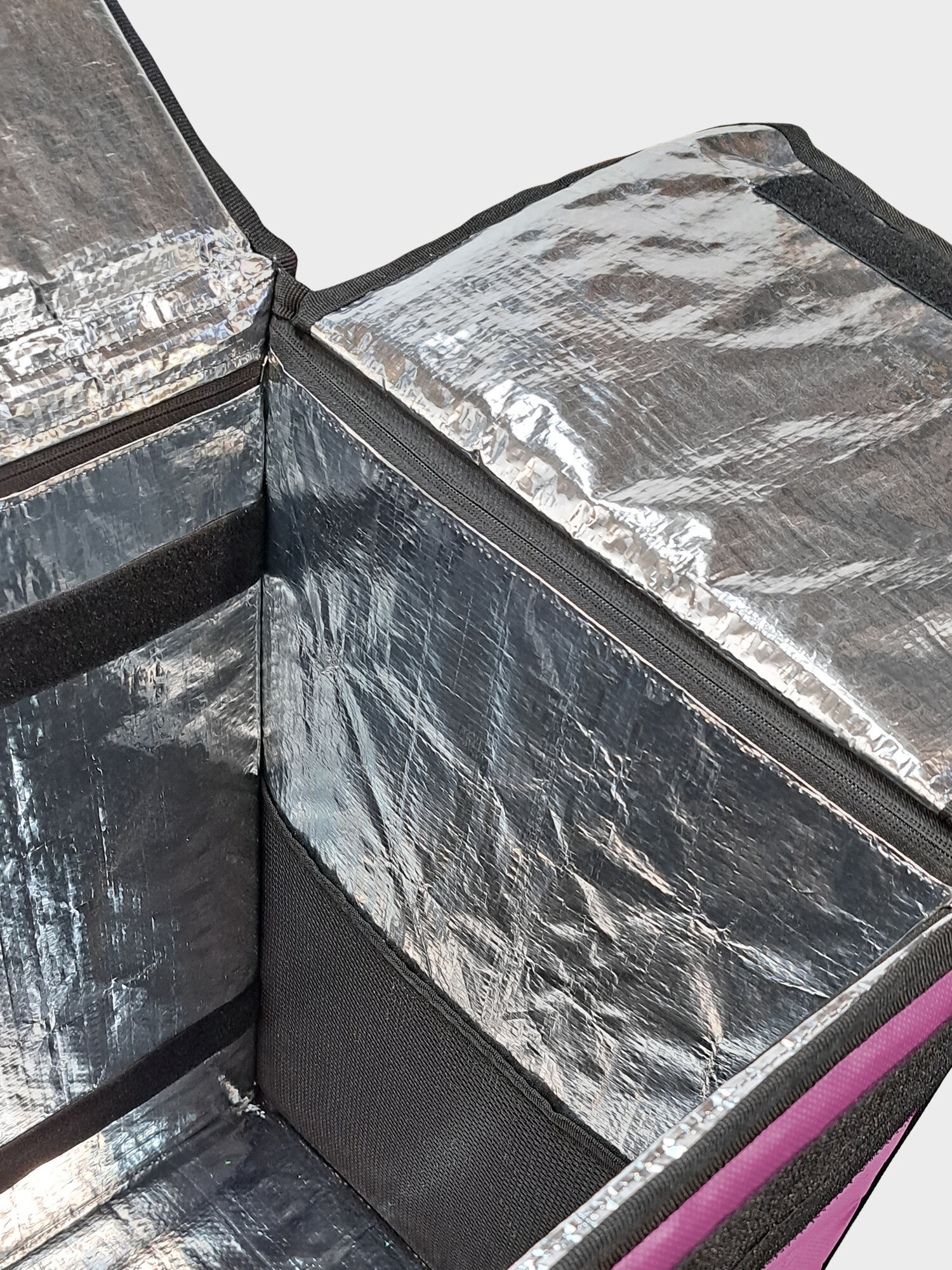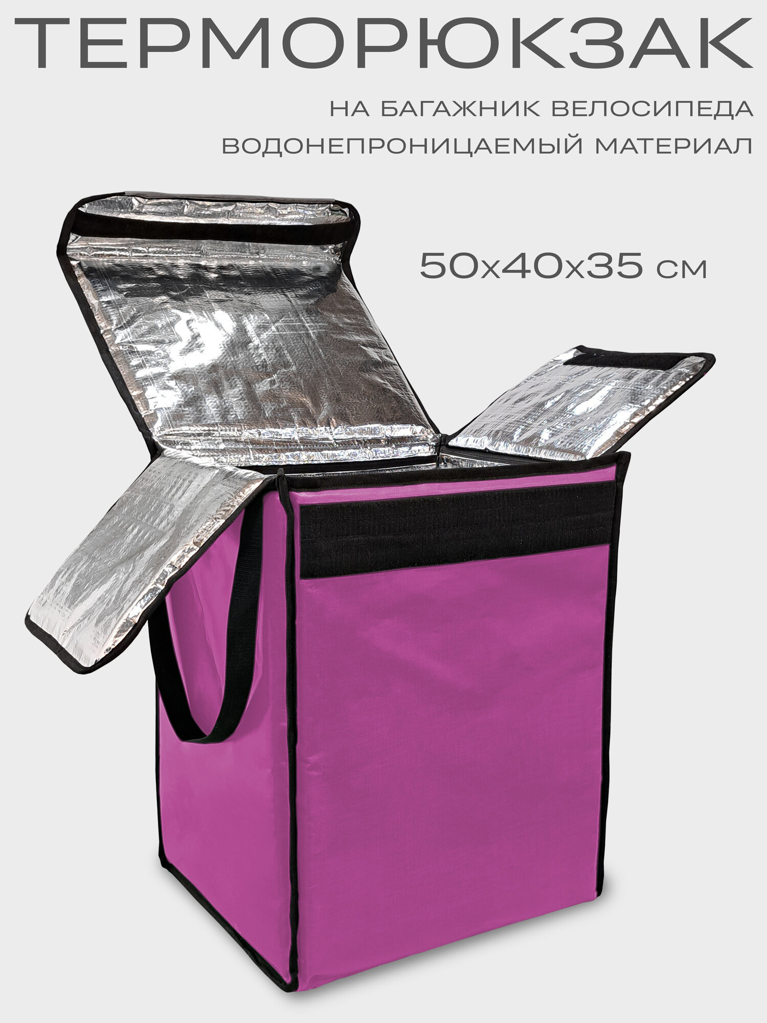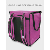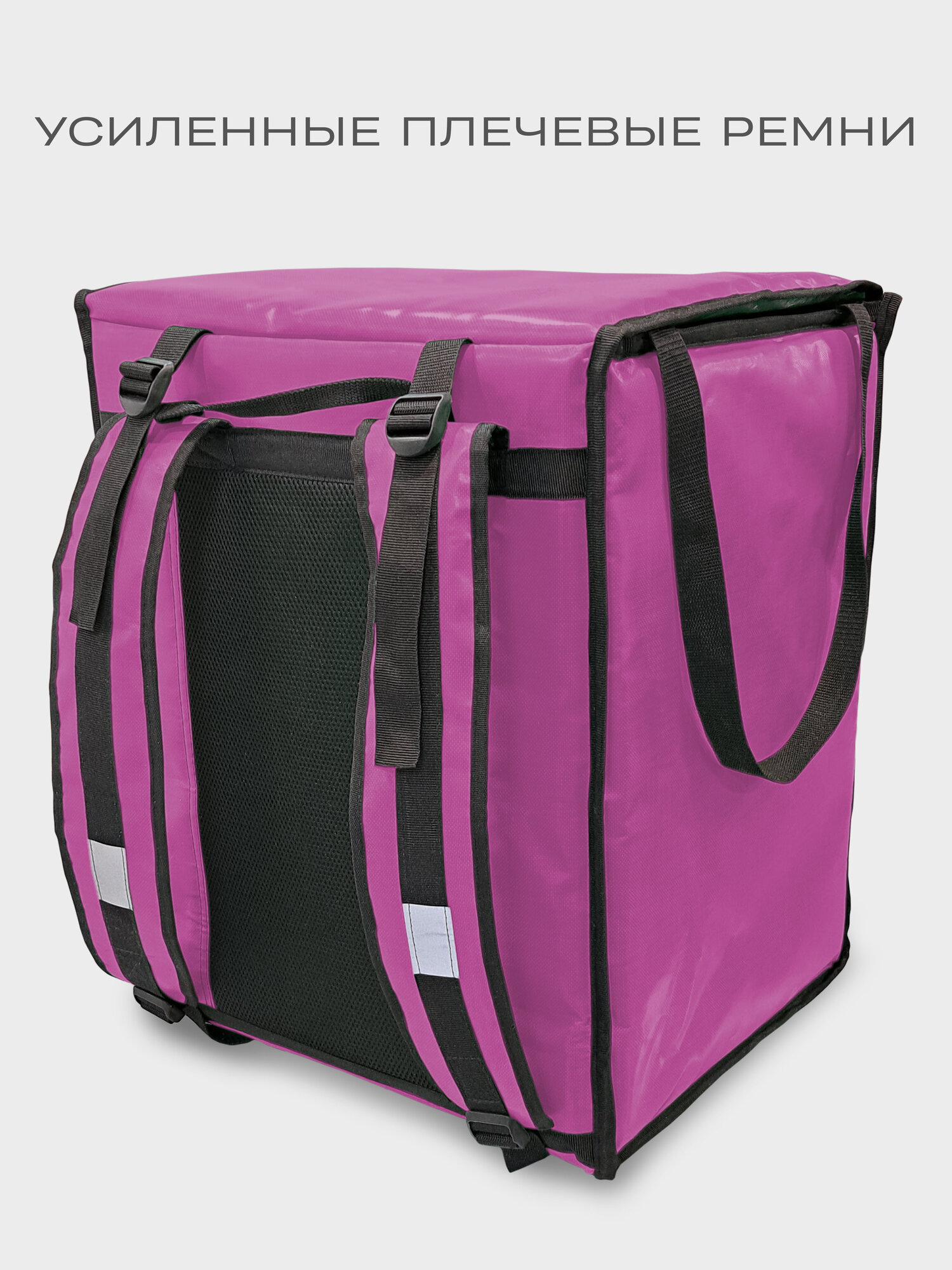 Термосумка-рюкзак подходит для велосипедного багажника. Выполнена из плотного материала ПВХ 100%: имеет 2 термослоя устойчивых К скоплению конденсата, микроорганизмам, плесени И грибкам. Они придают жесткость стенкам сумки, сохраняя продукты от давления И деформации. Внутренняя часть сумки из армированного фольгированного материала, который НЕ рвется при контакте с углами коробок, пластиковой посудой и т. д. Термосумка сохраняет температуру еды 2-3 часа при резкой разнице температур и до 10 часов при средней разнице температур. Эта термосумка курьера может перенести 1000 доставок.