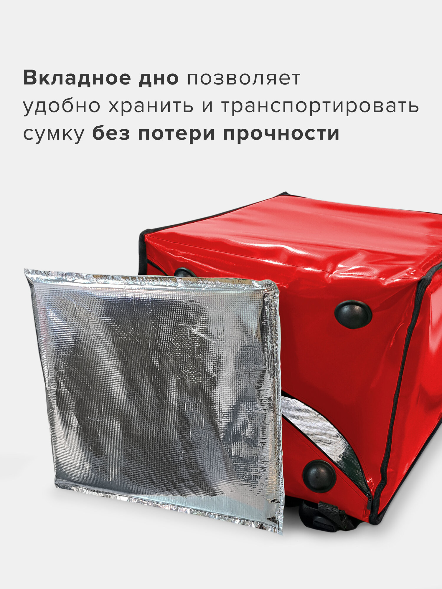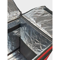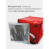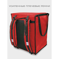 Термосумка-рюкзак подходит для велосипедного багажника. Выполнена из плотного материала ПВХ 100%: имеет 2 термослоя устойчивых К скоплению конденсата, микроорганизмам, плесени И грибкам. Они придают жесткость стенкам сумки, сохраняя продукты от давления И деформации. Внутренняя часть сумки из армированного фольгированного материала, который НЕ рвется при контакте с углами коробок, пластиковой посудой и т. д. Термосумка сохраняет температуру еды 2-3 часа при резкой разнице температур и до 10 часов при средней разнице температур. Эта термосумка курьера может перенести 1000 доставок.