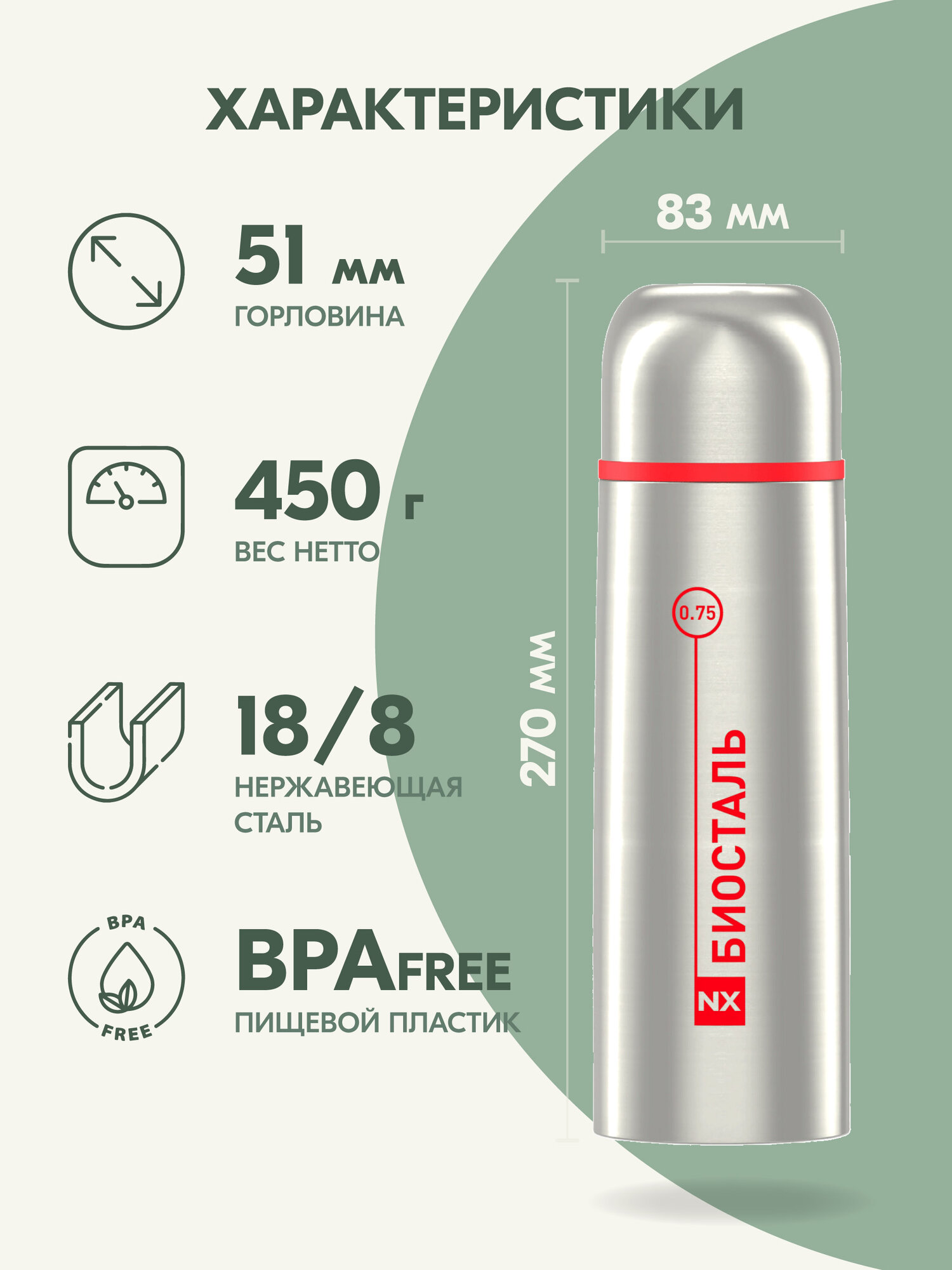 Купить Термос 0.75 литра классический, стальной с узкой горловиной, Биосталь/Biostal (750 мл) с доставкой по всей России. Термос 0.75 литра классический, стальной с узкой горловиной, Биосталь/Biostal (750 мл): сравнение цен, характеристики, фото, актуальное наличие и цены.