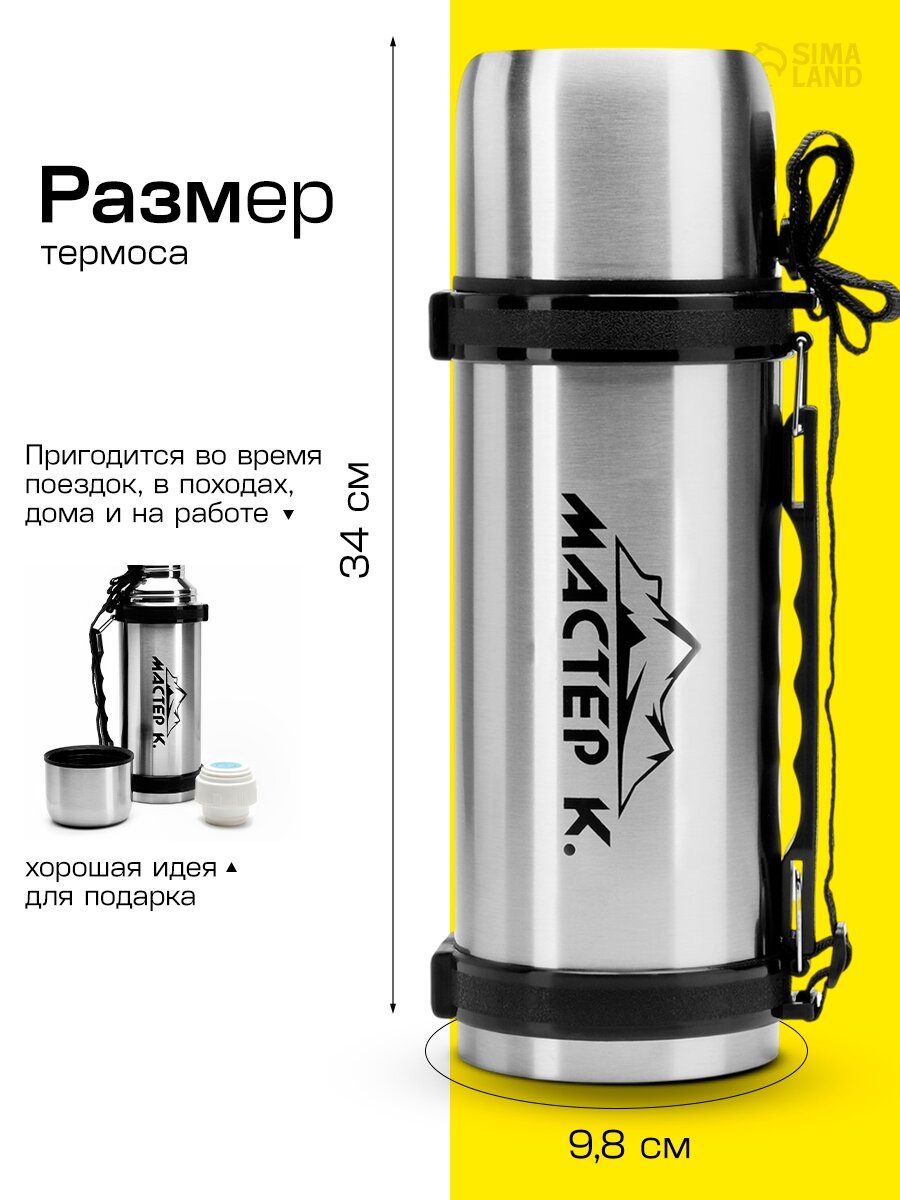 Термос, 1.2 л, Движение, «Мастер К.», с кружкой, сохраняет тепло 18 ч, 9.8 х 34 см: сравнение цен, характеристики, фото, актуальное наличие и цены.