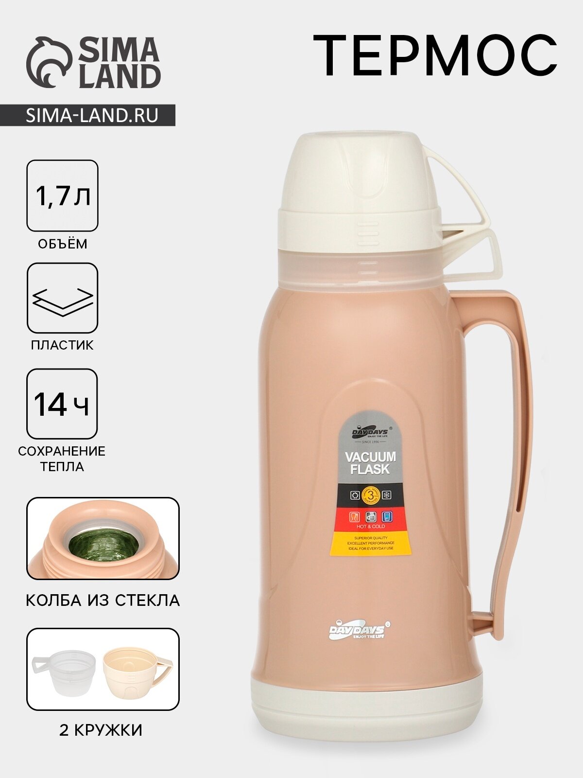 Купить Термос 1.7 л, 14×34 см, со стеклянной колбой, сохраняет тепло 14 ч, пластик, бежевый с доставкой по всей России. Термос 1.7 л, 14×34 см, со стеклянной колбой, сохраняет тепло 14 ч, пластик, бежевый: сравнение цен, характеристики, фото, актуальное наличие и цены.