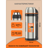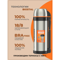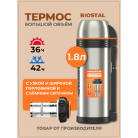 Купить Термос 1.8 л Биосталь, нержавеющая сталь, широкое горло, с ситечком, для еды и напитков с доставкой по всей России.