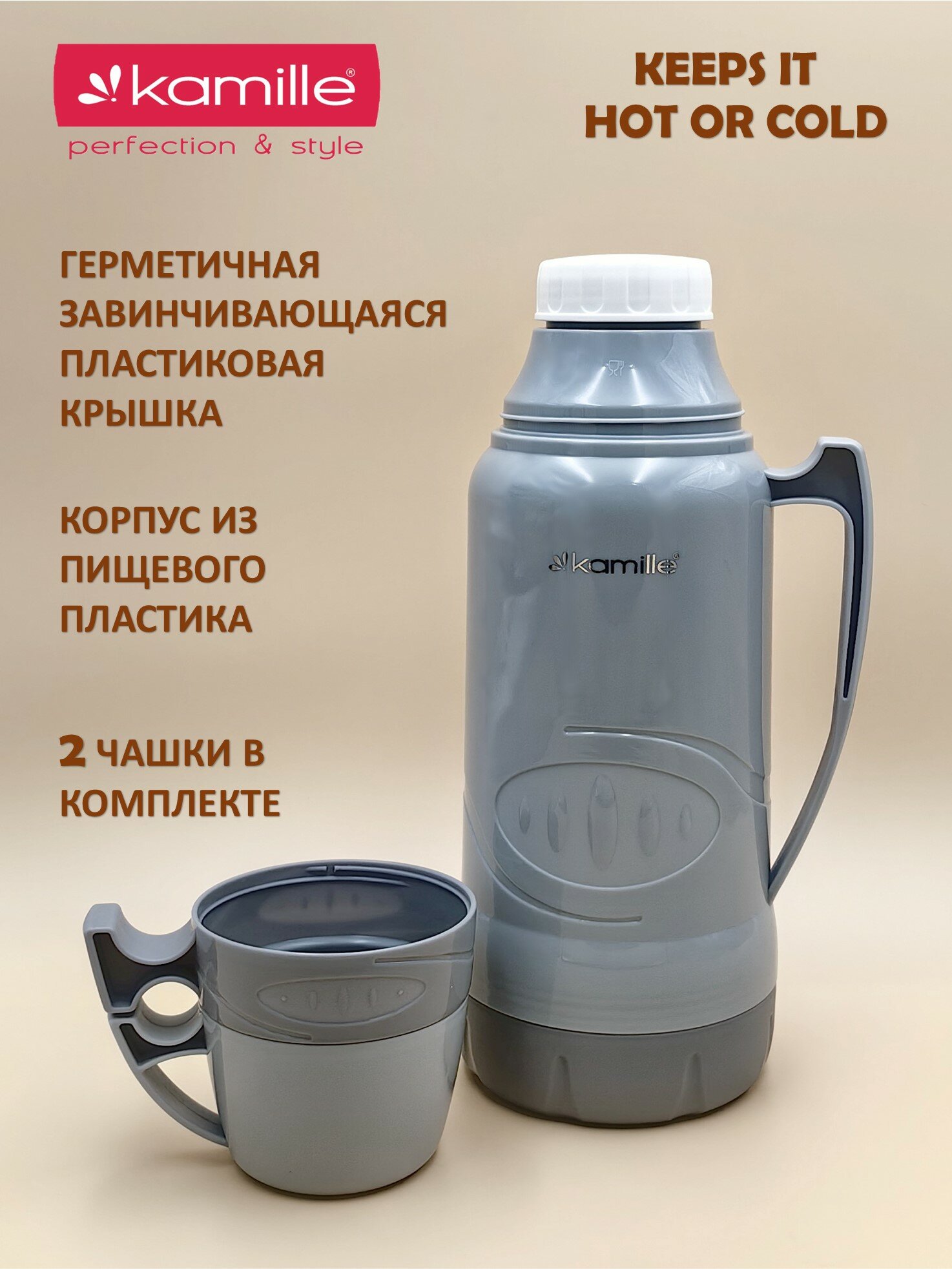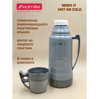 Термос 1,8 л. со стеклянной колбой Kamille KM 2032 пластиковый, 2 чашки (2032 / серый): сравнение цен, характеристики, фото, актуальное наличие и цены.