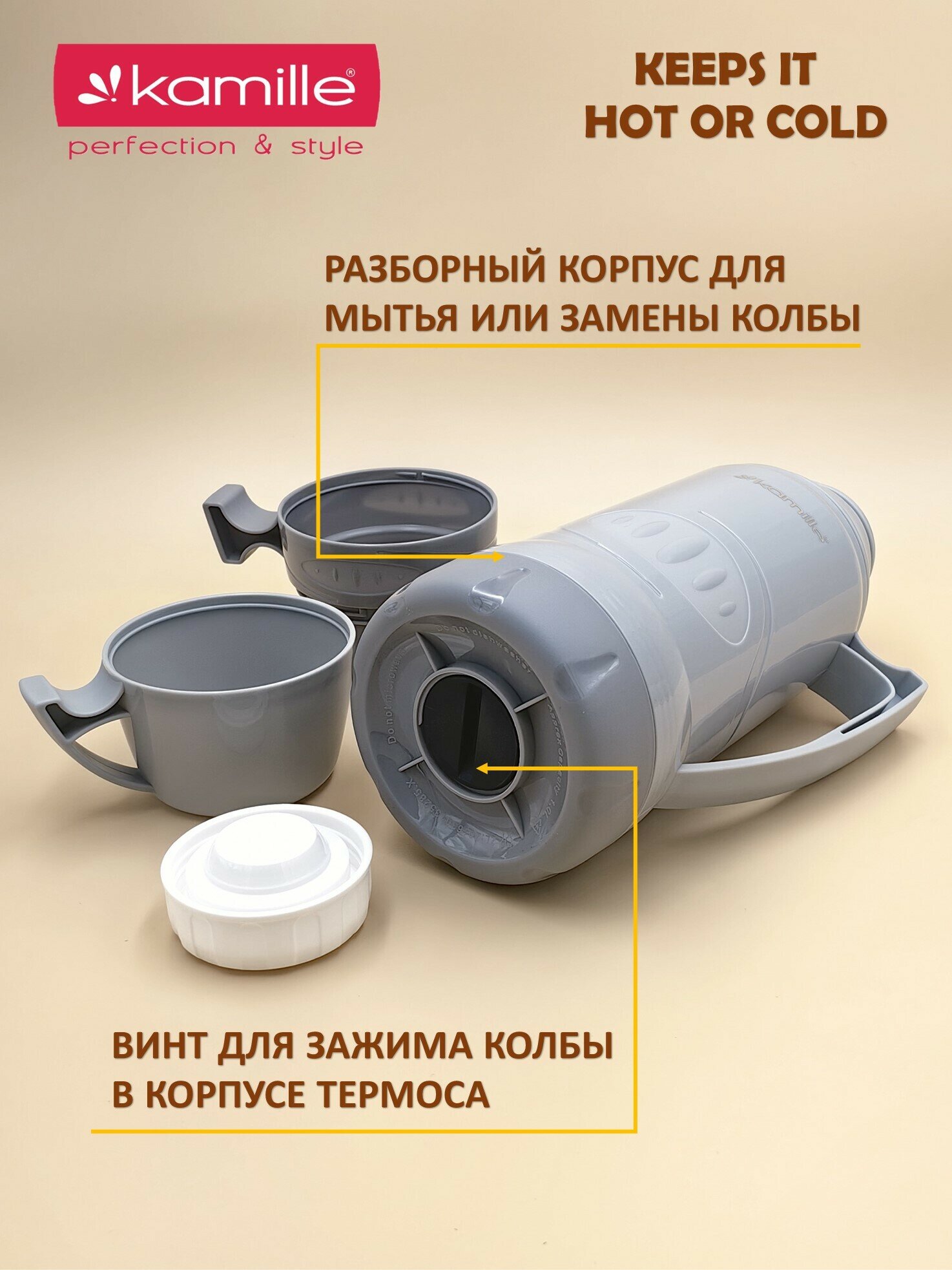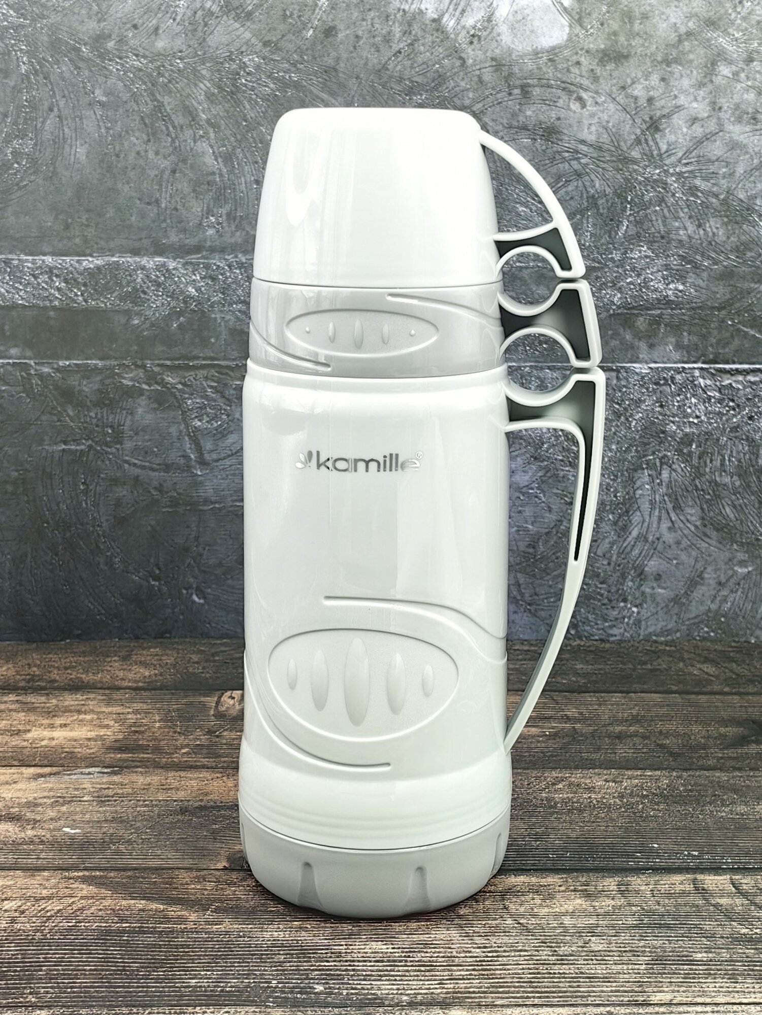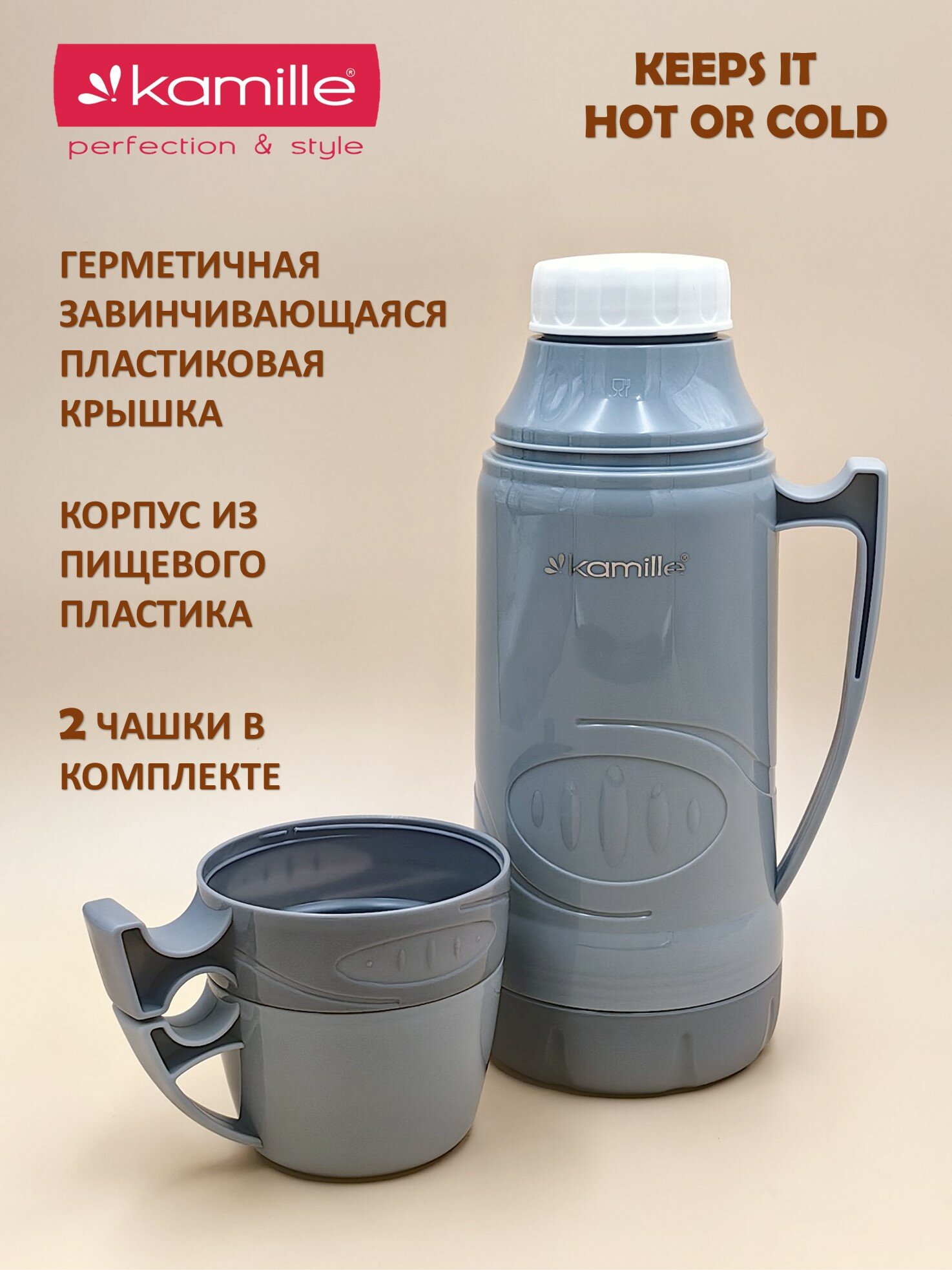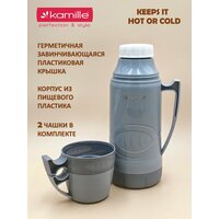 Термос 1 л. со стеклянной колбой Kamille KM 2031 пластиковый, 2 чашки (2031 / серый): сравнение цен, характеристики, фото, актуальное наличие и цены.