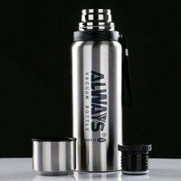 Купить Термос 1 л, со стеклянной колбой, сохраняет тепло 12 ч, с кружкой, коричневый с доставкой по всей России.