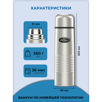 Термос 1 литр с чехлом для переноски, классический, с узкой горловиной, 1000 мл Биосталь