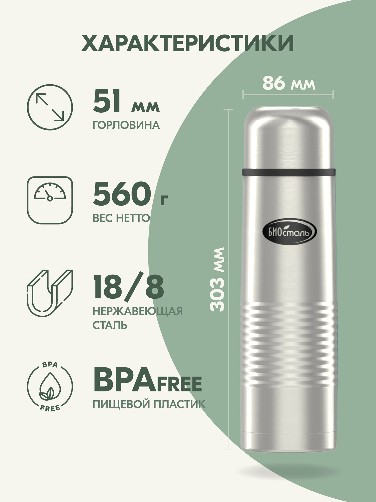 Термос 1 литр с чехлом для переноски, классический, с узкой горловиной, 1000 мл Биосталь: сравнение цен, характеристики, фото, актуальное наличие и цены.