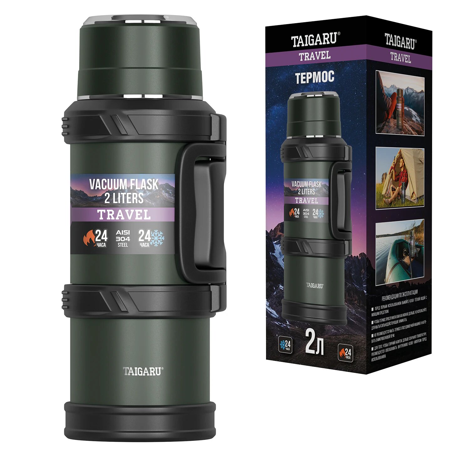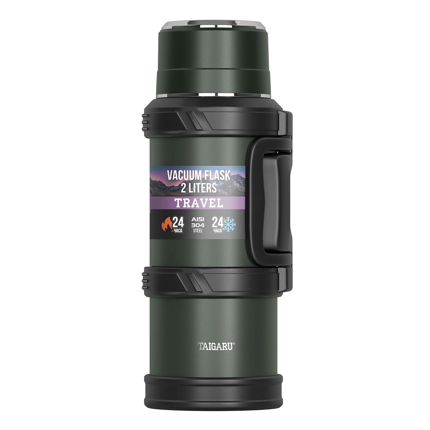 Термос 2 л TAIGARU (тайгару) TRAVEL, нержавеющая сталь SUS304, 2 кружки, скрытая ручка, ситечко, темно-зеленый, 700316: сравнение цен, характеристики, фото, актуальное наличие и цены.