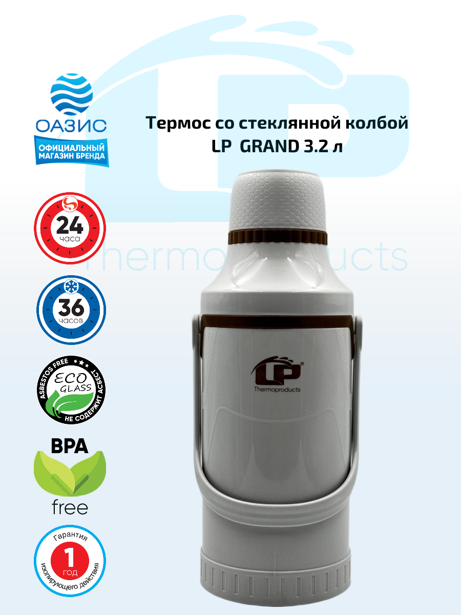 Купить Термос LaPlaya LP GRAND, 3.2 л, со стеклянной колбой и крышкой-чашкой с доставкой по всей России.