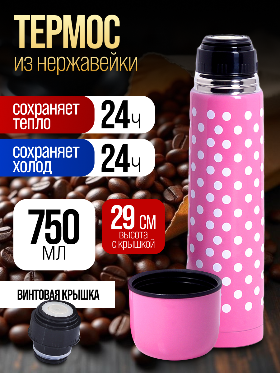 Термос имеет эргономичную форму, что делает его удобным в использовании и переноске. Он подходит для различных напитков, включая суп, компот и холодные или горячие напитки. Он сохраняет температуру напитков на протяжении длительного времени, что позволяет наслаждаться ими в любое время.