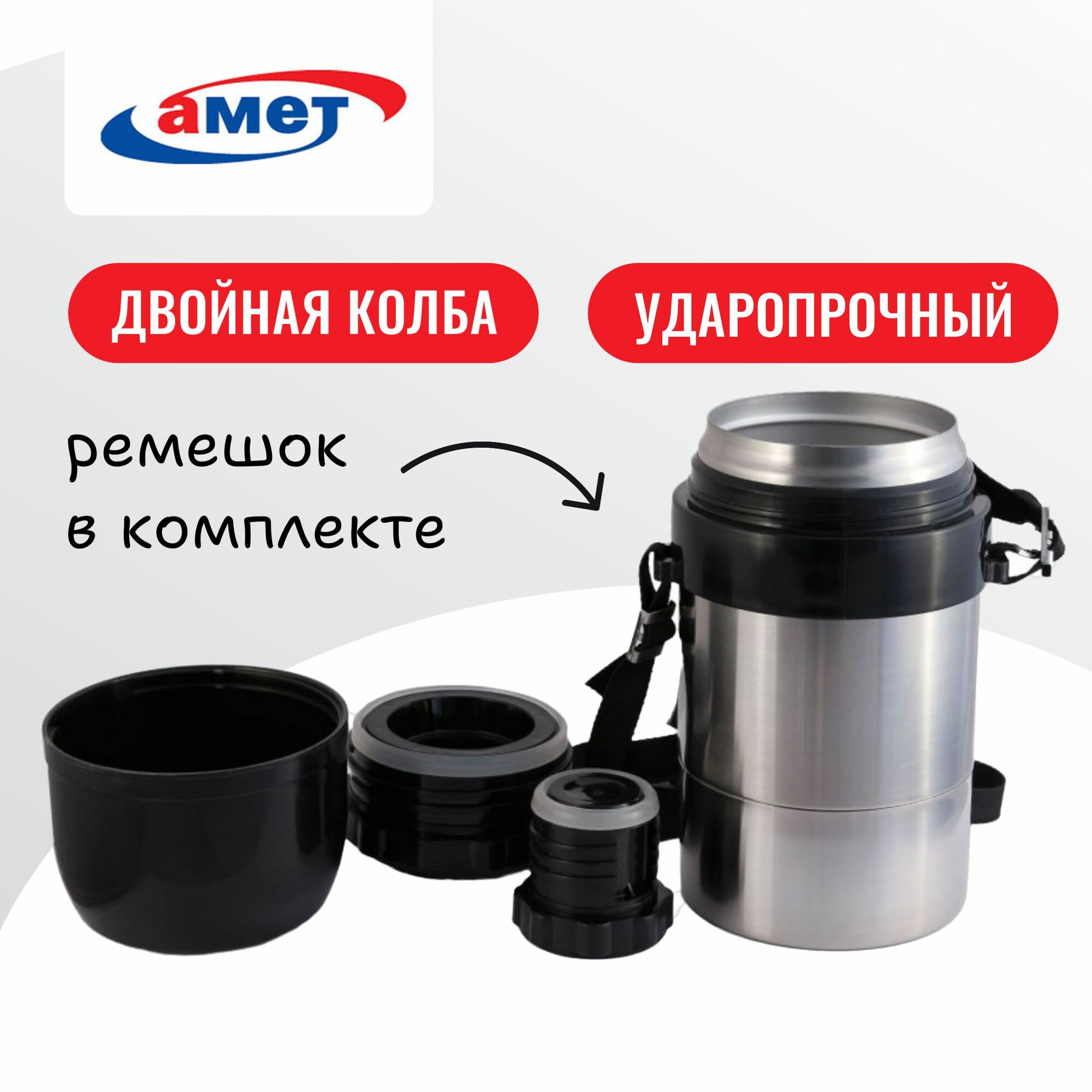 Купить Термос Амет Дорожный, универсальное горло, с ремнем с доставкой по всей России. Термос Амет Дорожный, универсальное горло, с ремнем: сравнение цен, характеристики, фото, актуальное наличие и цены.