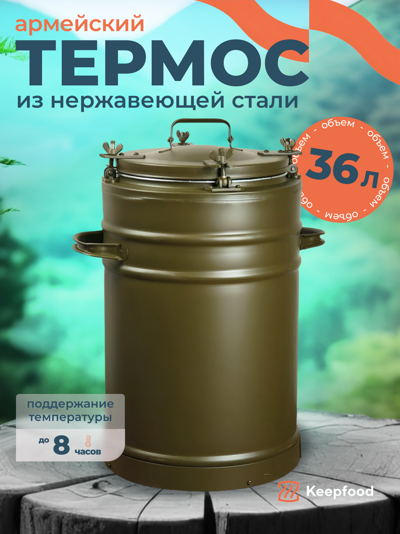 Купить Термос армейский 36 л большой для еды, супа с широким горлом Т-36 Посуда туристическая для похода и полевой кухни с доставкой по всей России.
