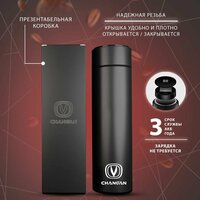 Умный термос с логотипом авто Changan и светодиодным LED дисплеем, отображающим температуру, сделан из нержавеющей стали медицинского уровня с противоударными свойствами. На герметичной крышке термоса есть специальное, уплотнительное кольцо, которое создаёт хороший вакуум и долго держит тепло. Особое силиконовое покрытие на внешнем донышке делает термос устойчивым на любой поверхности. Термос рассчитан на 3 года автономной работы без дополнительной зарядки акб. На внутренней стороне крышки находится чувствительный датчик температуры. Так же в термосе предусмотрена сетка для фильтрации чая и других напитков. Внешнее покрытие термоса из приятного на ощупь полипропилена. Внешний, светодиодный дисплей отображает температуру одним касанием. Температура внутри термоса сохраняется до 12 часов. Кружка термос легко открывается и герметично закрывается, дополнительный механизм в виде клапана- пробки позволит быстро налить напиток и не расплескать. Такой термос подходит как для горячих напитков, так и для холодных. Вакуумные двойные стенки термоса сохраняют нужную температуру даже в долгих поездках, он компактный, лёгкий и не займет много места. Термос с логотипом марки авто упакован в стильную коробку и станет отличным подарком.