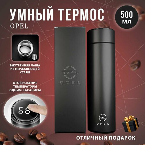 Умный термос с логотипом авто Opel и светодиодным LED дисплеем, отображающим температуру, сделан из нержавеющей стали медицинского уровня с противоударными свойствами. На герметичной крышке термоса есть специальное, уплотнительное кольцо, которое создаёт хороший вакуум и долго держит тепло. Особое силиконовое покрытие на внешнем донышке делает термос устойчивым на любой поверхности. Термос рассчитан на 3 года автономной работы без дополнительной зарядки акб. На внутренней стороне крышки находится чувствительный датчик температуры. Так же в термосе предусмотрена сетка для фильтрации чая и других напитков. Внешнее покрытие термоса из приятного на ощупь полипропилена. Внешний, светодиодный дисплей отображает температуру одним касанием. Температура внутри термоса сохраняется до 12 часов. Кружка термос легко открывается и герметично закрывается, дополнительный механизм в виде клапана- пробки позволит быстро налить напиток и не расплескать. Такой термос подходит как для горячих напитков, так и для холодных. Вакуумные двойные стенки термоса сохраняют нужную температуру даже в долгих поездках, он компактный, лёгкий и не займет много места. Термос с логотипом марки авто упакован в стильную коробку и станет отличным подарком.