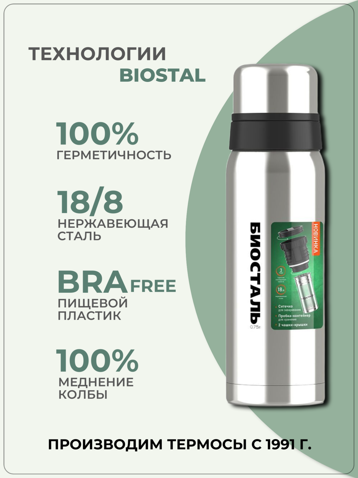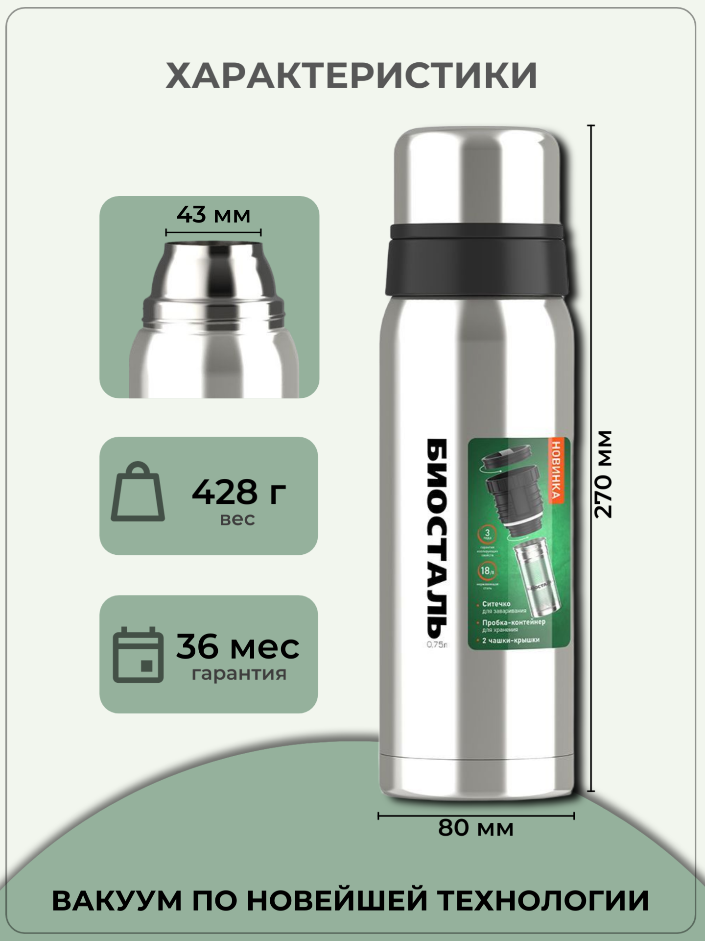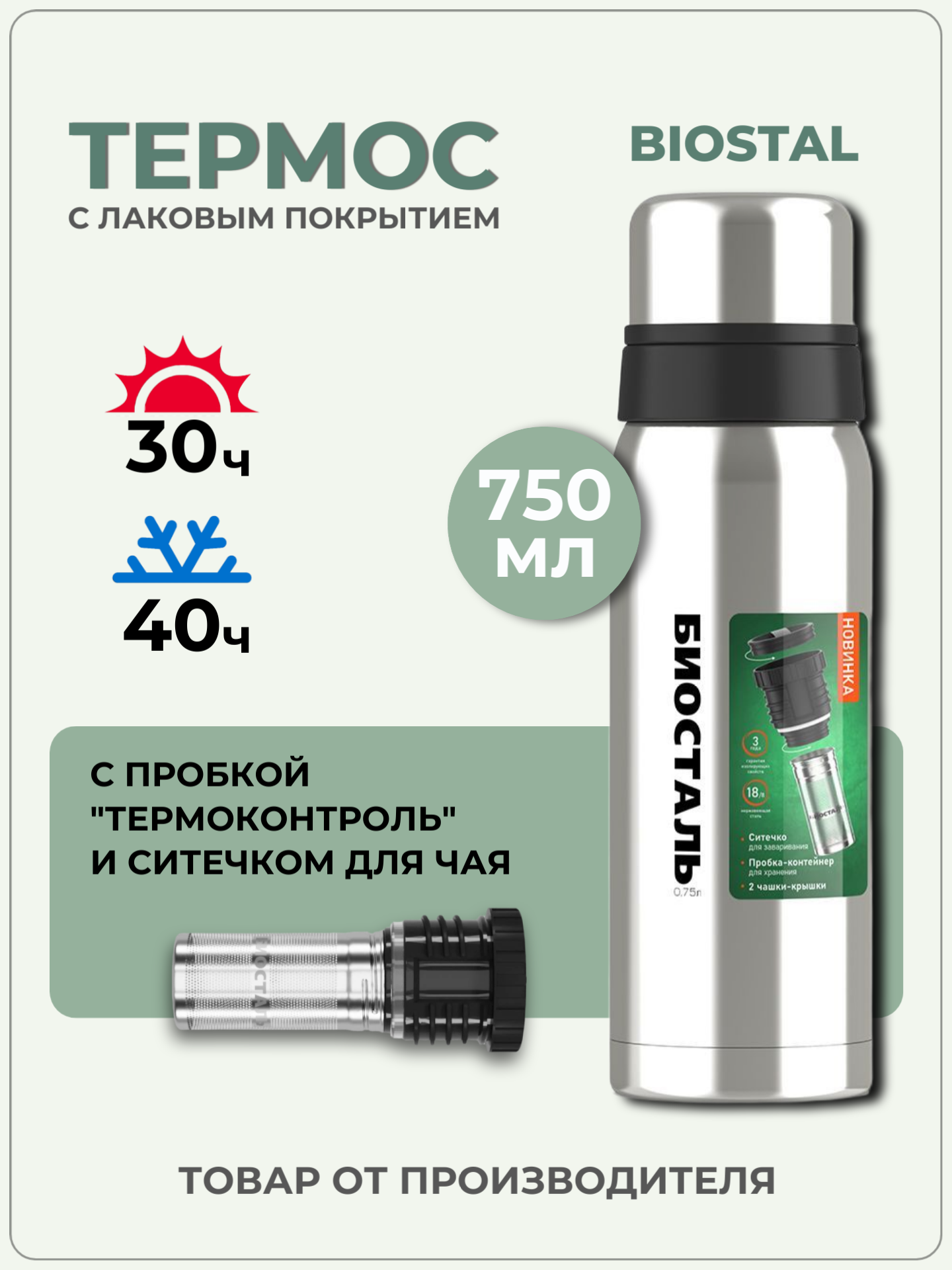 Купить Термос Биосталь 0.75 литра классический с контейнером и ситечком для чая, Biostal 750 мл с доставкой по всей России. Термос Биосталь 0.75 литра классический с контейнером и ситечком для чая, Biostal 750 мл: сравнение цен, характеристики, фото, актуальное наличие и цены.