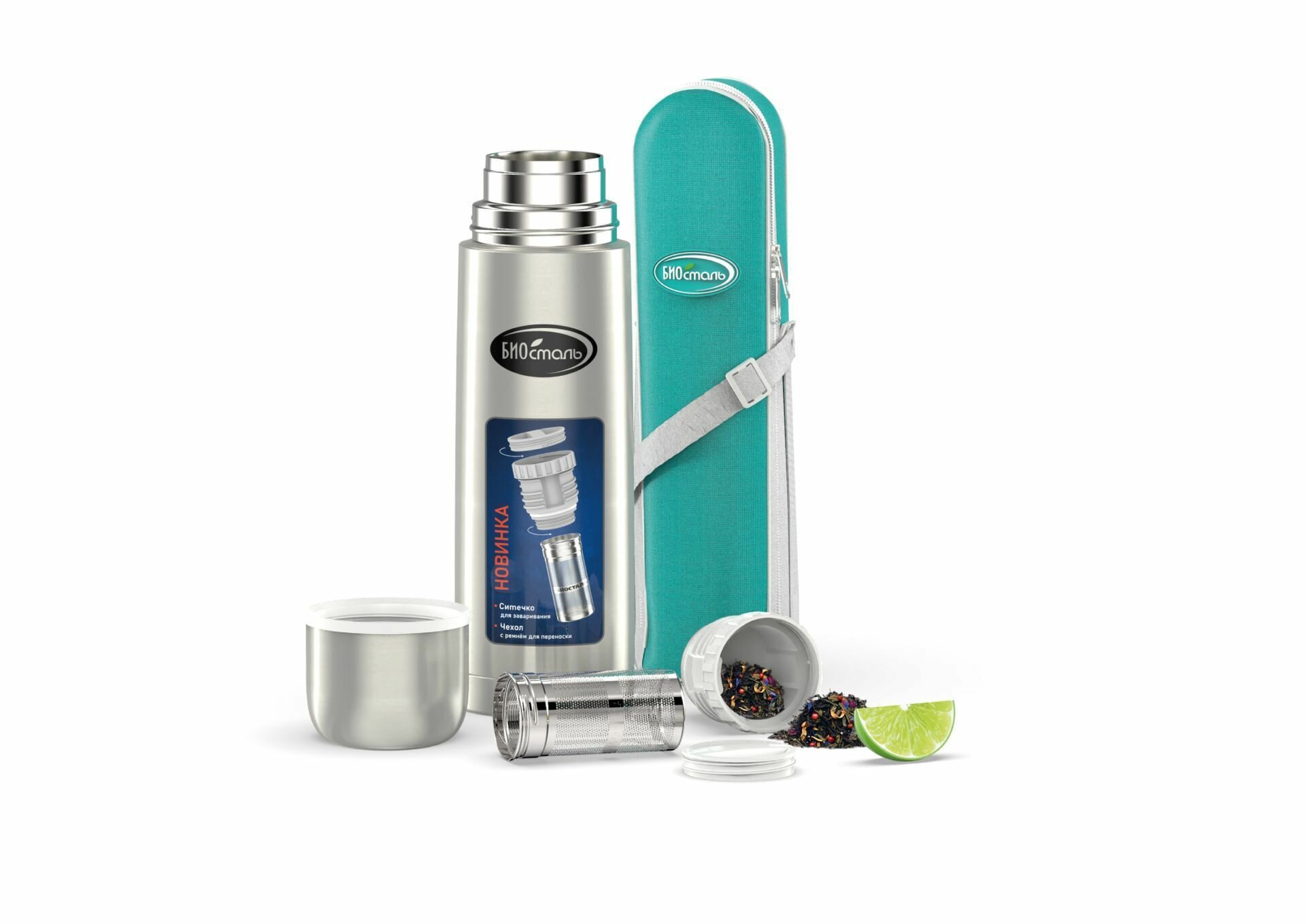 Термос Biostal (0,75 литра), с ситечком и чехлом, стальной: сравнение цен, характеристики, фото, актуальное наличие и цены.
