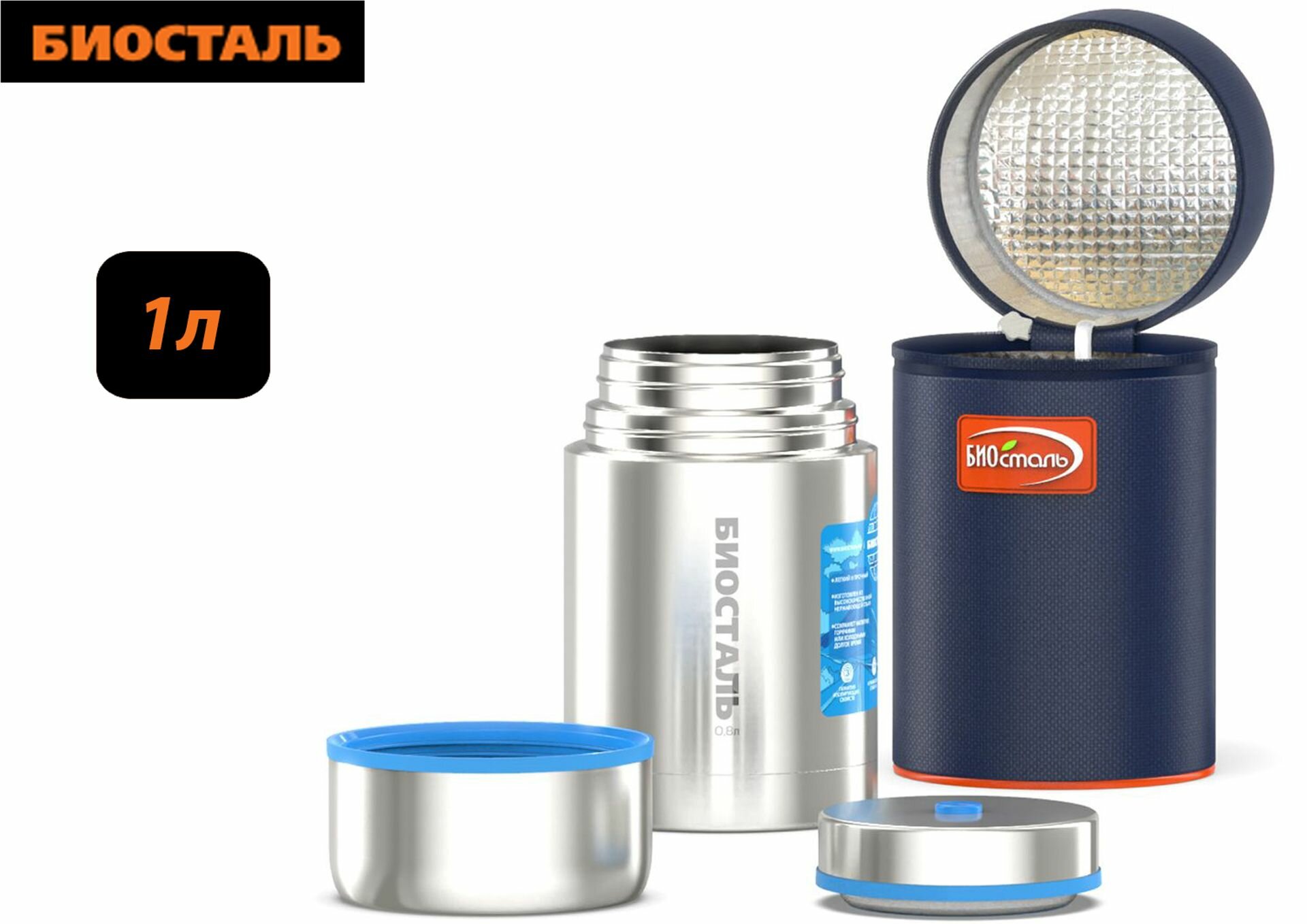 Термос биосталь-авто с широким горлом, суповой, С термочехлом, 1,0л.