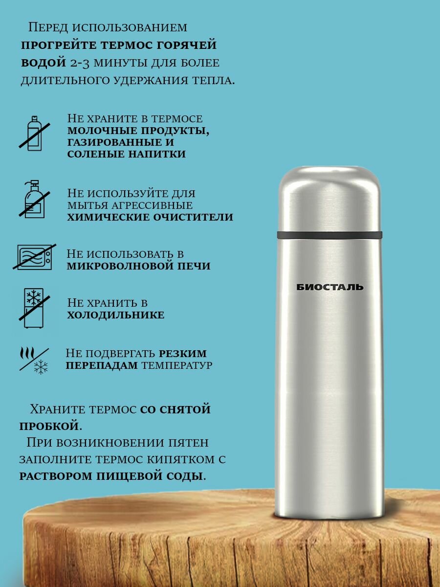 Термос с узким горлом Biostal относится к классической серии. Термосы этой серии, являющейся лидером продаж, просты в использовании, экономичны и многофункциональны. Термос предназначен для хранения горячих и холодных напитков (чая, кофе и пр.) Пробка без кнопки надежна, проста в использовании и позволяет дольше сохранять тепло благодаря дополнительной теплоизоляции, пробка с кнопкой удобна в использовании и позволяет, не отвинчивая ее, наливать напитки после простого нажатия на кнопку.