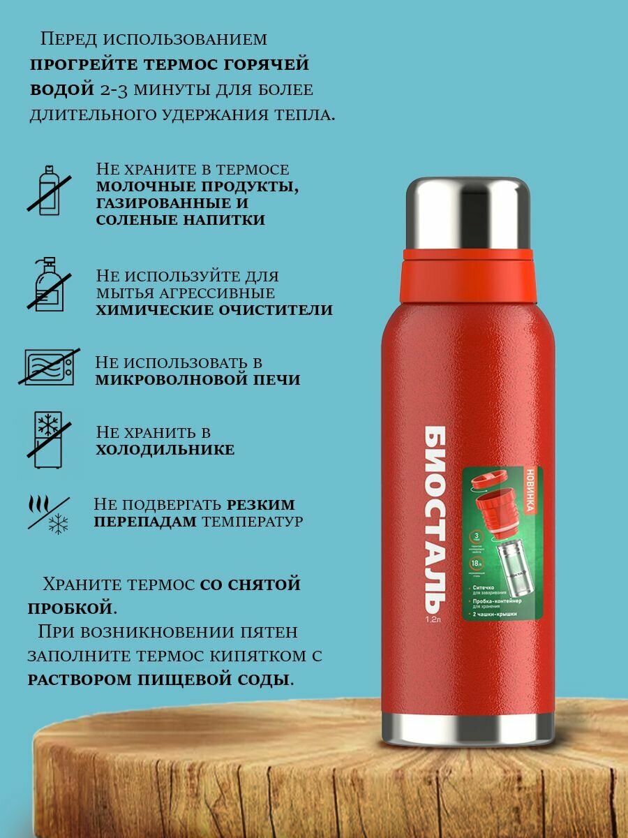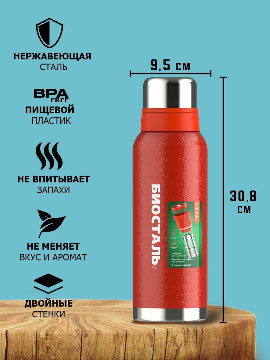 Термос Биосталь Biostal для чая и кофе, 1,2 л, 2 чашки, с ситечком, красный, NBR-1200Z-R: сравнение цен, характеристики, фото, актуальное наличие и цены.