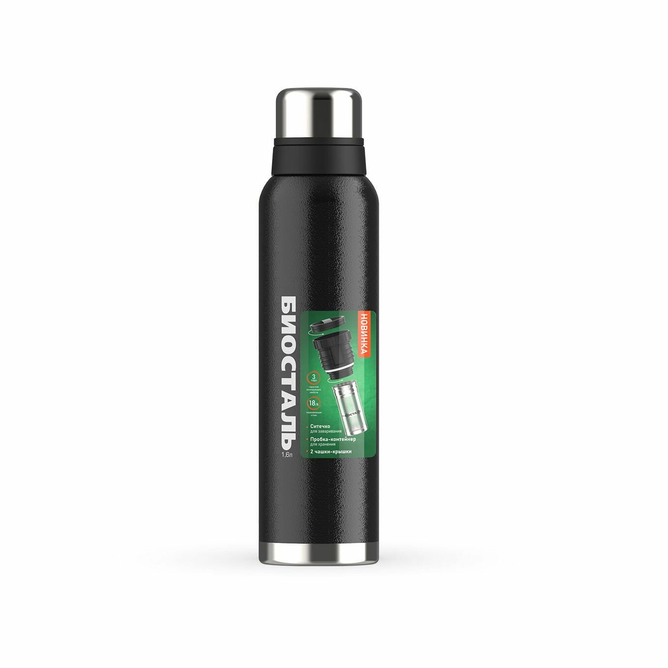 Купить Термос Биосталь Biostal для чая и кофе, 1,6 литра, 2 чашки, с ситечком, черный, NBR-1600Z-C с доставкой по всей России.
