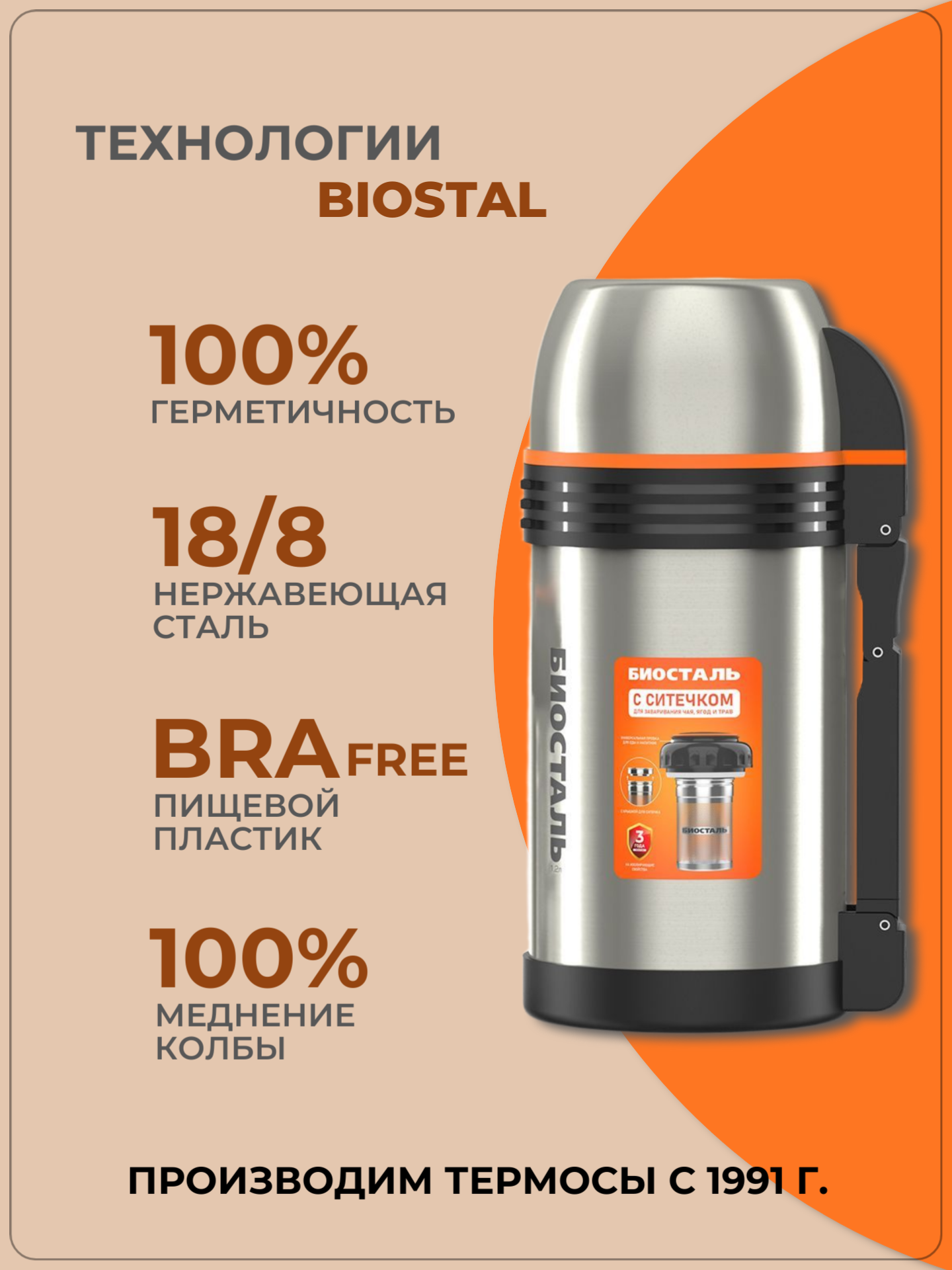 Купить Термос Биосталь, универсальный, с ситечком, для напитков и еды, 1200мл с доставкой по всей России. Термос Биосталь, универсальный, с ситечком, для напитков и еды, 1200мл: сравнение цен, характеристики, фото, актуальное наличие и цены.