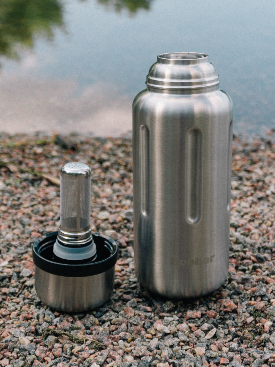 Классический компактный термос Bobber 770 мл с широким горлом и съемным ситечком в комплекте обеспечивает высочайшие показатели удержания температуры, сохраняя тепло до 28 часов, а холод - до 42. Прочный корпус из нержавеющей стали с двойными стенками и вакуумной изоляцией гарантирует надёжность и долговечность. Благодаря уникальной конструкции с выемками на корпусе термос удобно держать в руке. Эргономичная пробка облегчает процесс открывания и закрывания. Металлическая пластина на пробке предотвращает контакт напитка с пластиком, делая использование термоса максимально приятным и безопасным. Термос 100% герметичный благодаря надежной пробке. Пробка с каналами для налива позволяет наливать напиток, не открывая термос полностью. В комплекте стальное сито для заваривания напитков. Широкое горло термоса позволяет добавить в термос лед, заварку, травы, а также упрощает очистку. Термос в комплекте с премиальным черным тубусом станет идеальным подарком.