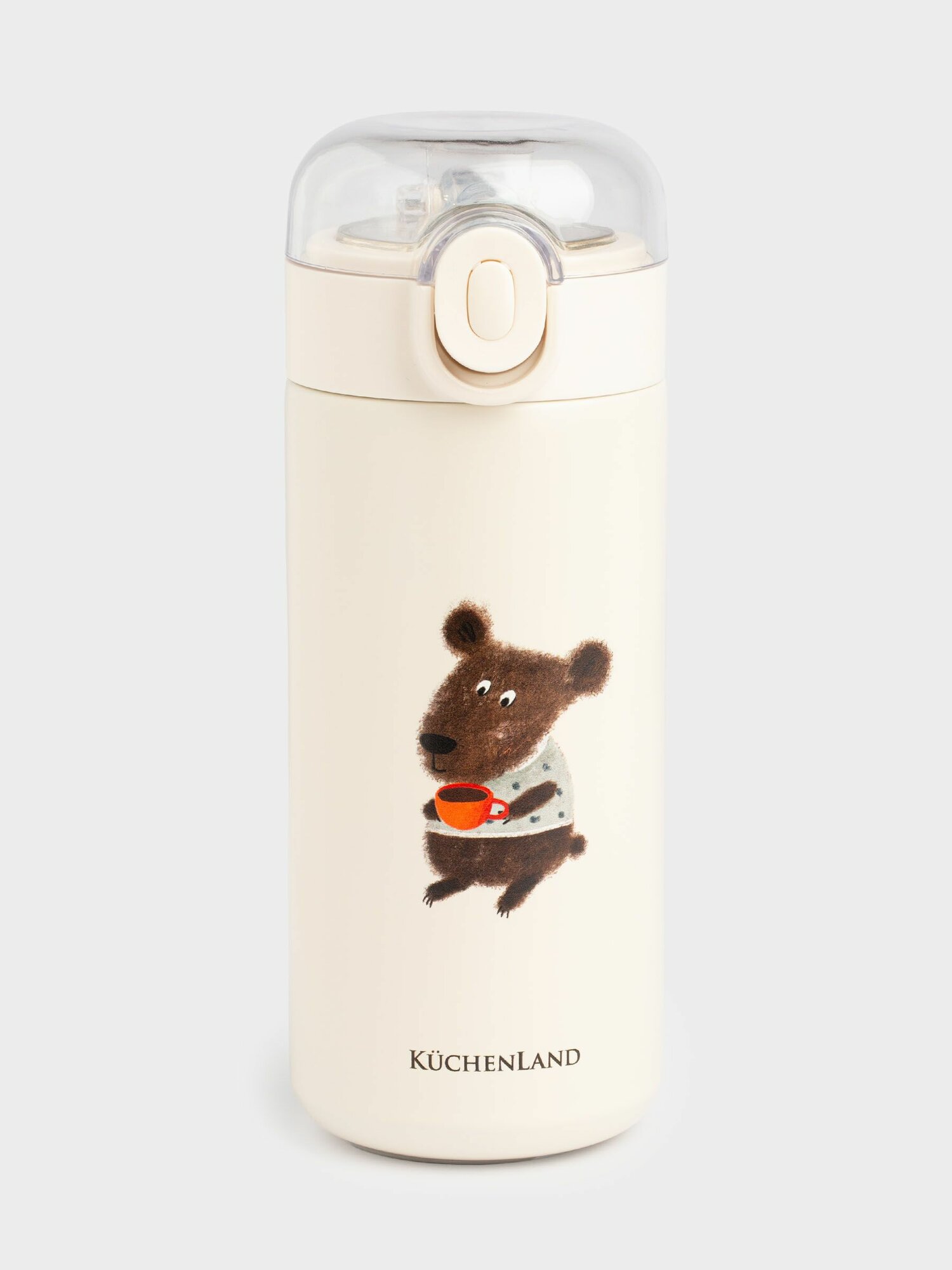 Купить Термос детский, 320 мл, с трубочкой, сталь/пластик, бежевый, Мишка, Cute vessel с доставкой по всей России.