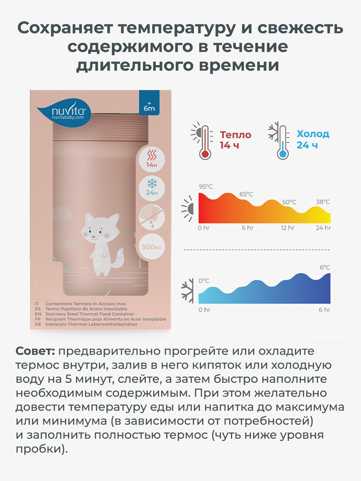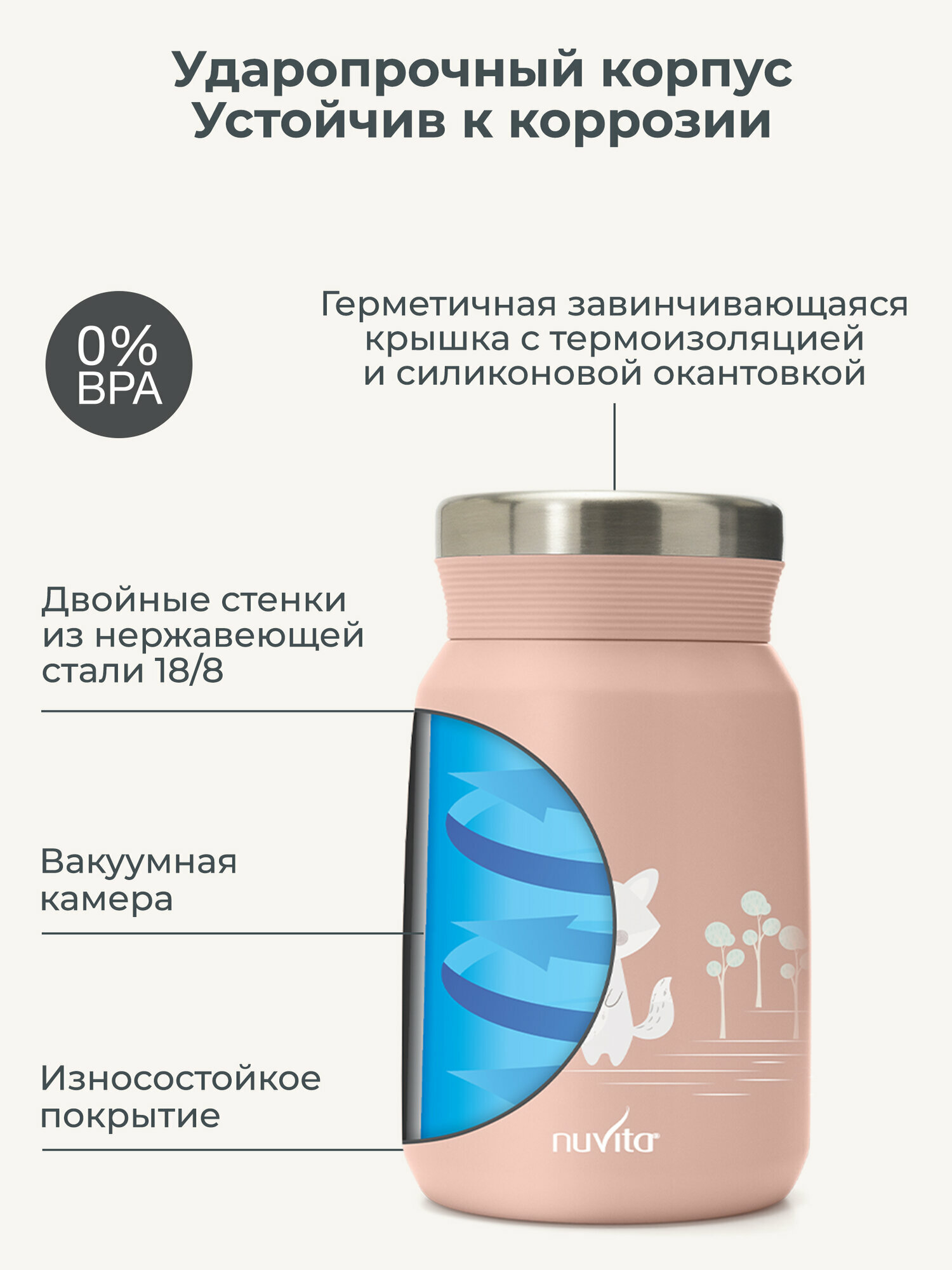 Купить Термос детский для еды и жидкостей Nuvita с широким горлом, 500 мл, розовый с доставкой по всей России.